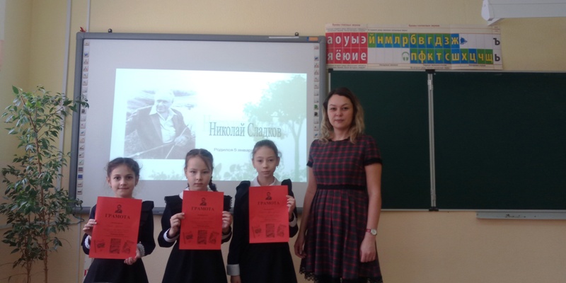 Николай Сладков всё своё творчество посвятил природе. Писатель хотел, чтобы люди, прочитав его произведения, научились своими глазами видеть необыкновенное в природе, научились любить, познавать и защищать её. Он рассуждал: «В лес пойдёшь – кого-нибудь да увидишь. А увидишь – узнать захочешь. Узнаешь – непременно полюбишь. А полюбишь – в обиду не дашь». Библиотекарь Казакова Л.М. рассказала немного фактов из жизни писателя и провела викторину по его рассказам. Дети с азартом отвечали на заданные вопросы и самым активным ребятам были вручены грамоты.