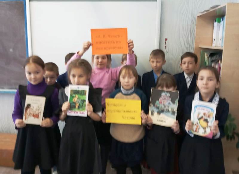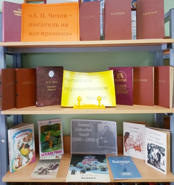 Библиотекарь познакомила ребят с биографией писателя и провела обзор книг у выставки. В ходе акции были прочитаны рассказы А.П.Чехова «Каштанка» и «Белолобый».В акции участвовали учащиеся 2 и 4 классов. В библиотеке оформлена книжная выставка «А. П. Чехов – писатель на все времена».