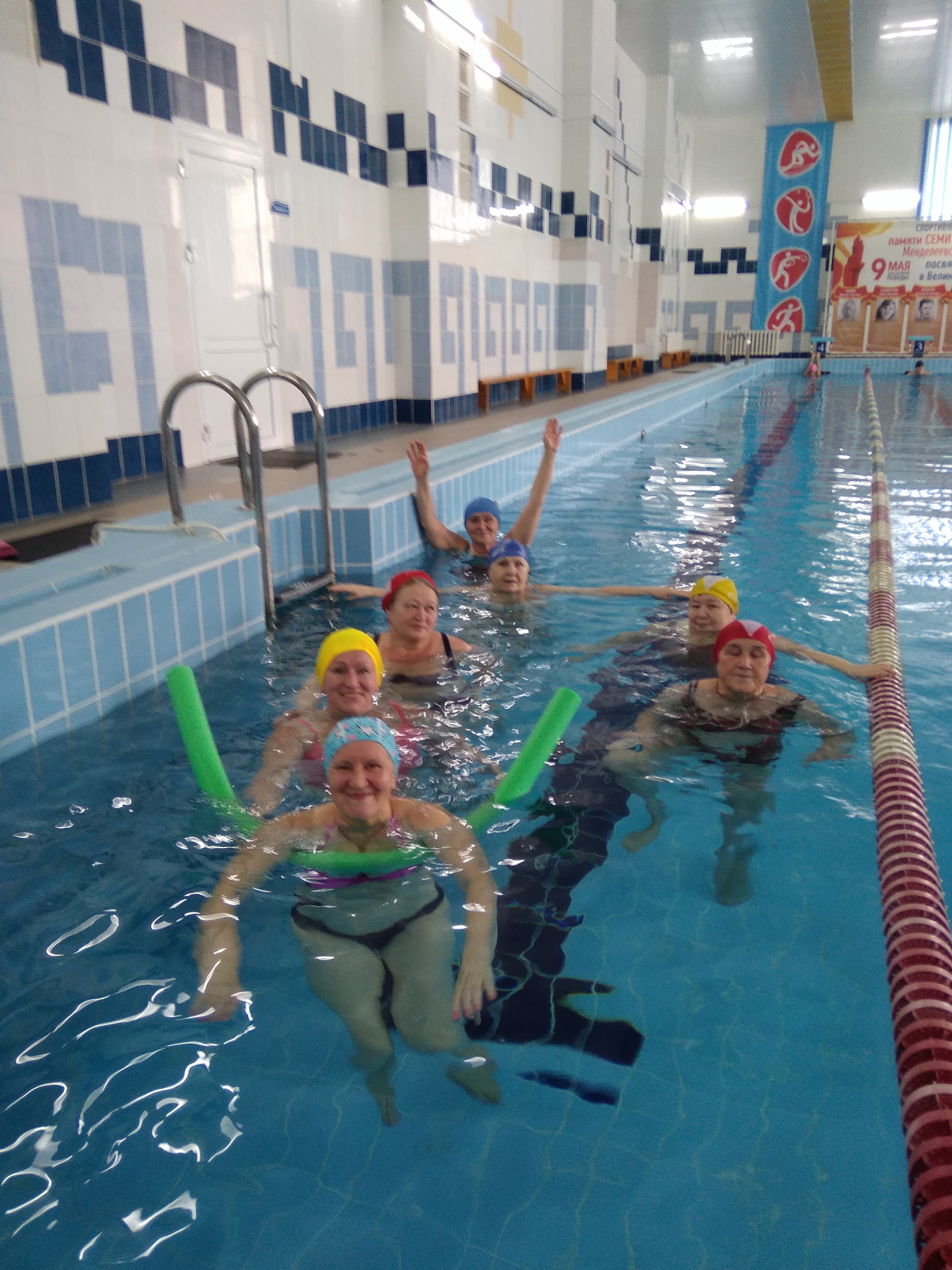 Выполнение дыхательных упражнений отлично сочетается с физическими, после которых «спортсменки» бегут в бассейн.