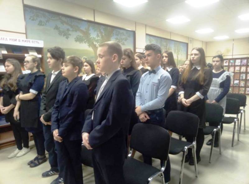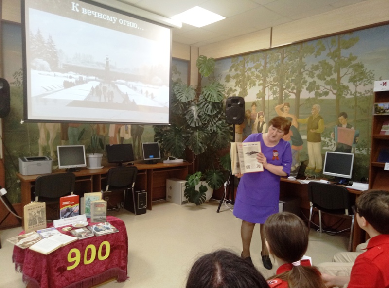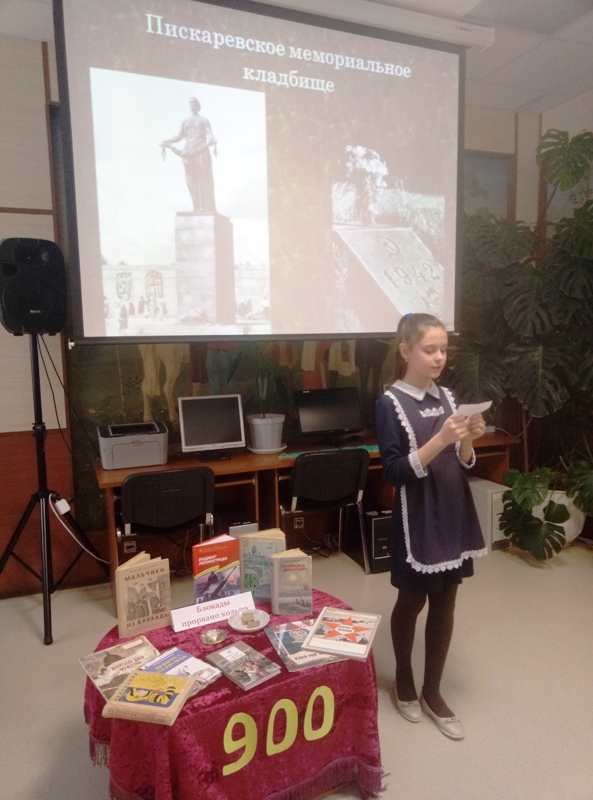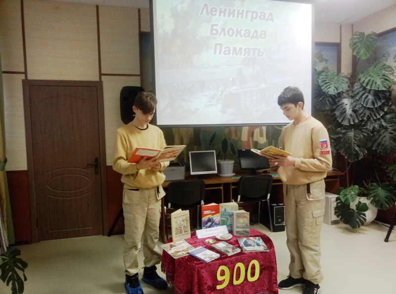 Школьники узнали о тяжёлых испытаниях, выпавших на долю жителей осаждённого города Ленинграда, о том, что в мире нет другого такого города, который отдал бы столько жизней за Победу. Жители Ленинграда стойко переносили блокаду города, отражали вражеские атаки; боролись с голодом, холодом, смертью; женщины и подростки, помогая фронту, вставали за станки, строили оборонительные укрепления. Подростки услышали историю о ленинградской школьнице Тане Савичевой – маленькой девочке, которая во время блокады вела дневник, содержащий девять страшных строк: каждая строка посвящена смерти одного из близких. Большое впечатление на детей произвёл рассказ о норме хлеба блокадников, о том, что значили в то время хлебные карточки, и как важна была для ленинградцев «дорога жизни». Просмотр фото - и видеодокументов, книжная выставка «Блокады прорвано кольцо» о том трудном времени, прозвучавшие 7-ая «Ленинградская» симфония Дмитрия Шостаковича и песня «Вставай страна огромная», оставили большой след в душе у присутствующих на мероприятии. В ходе встречи ребята прочитали стихи Ольги Берггольц, В. Инбер, Ю.Воронова, Ю. Андрушенко, В. Суслова. Школьники пришли к выводу, что подвиг жителей блокадного Ленинграда учит мужеству, стойкости и безграничной любви к Родине и этого нельзя забывать. В конце мероприятия ученики почтили память всех погибших в годы Великой Отечественной войны минутой молчания под стук метронома.