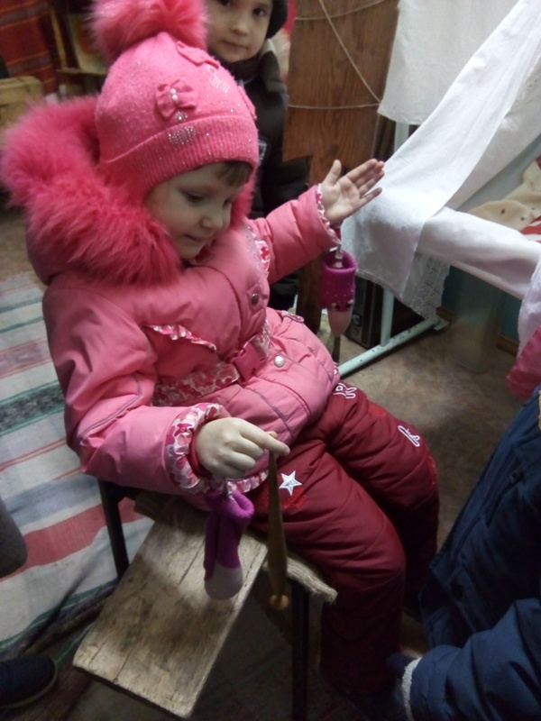 Дети с большим интересом слушали рассказ библиотекаря об истории деревни, о быте своих предков. Унеслись далеко в прошлое, взяв в руки старинное перо, прокрутив в руке веретено, покачав детскую люльку и заглянув в старинный сундук.