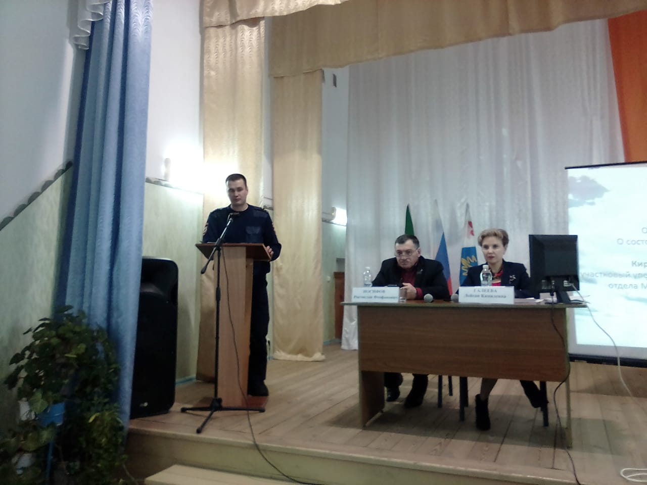 С отчетом о работе за 2019 год, о состоянии оперативной обстановки выступил Владимир Кирилов – участковый уполномоченный полиции капитан полиции отдела МВД по Менделеевскому району РТ.