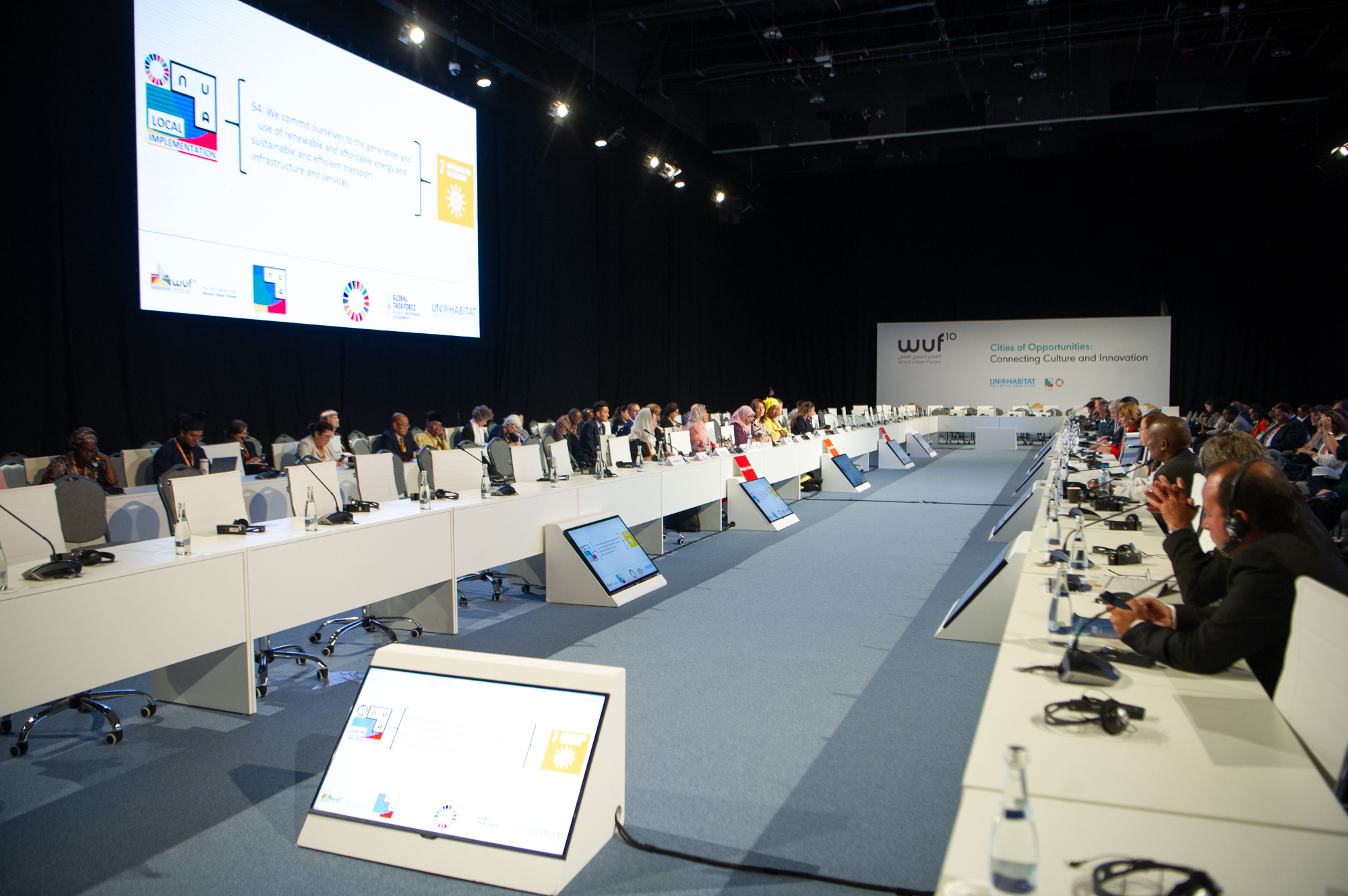 Форум городов проходил в национальном выставочном центре Абу-Даби. В рамках программы мероприятия прошли открытые дискуссии и пленарные сессии, на которых обсудили новые подходы и методы в развитии муниципалитетов, инновационные механизмы финансирования для устойчивых городов, решения в сфере жилья, мобильности, планирования и управления, влияние миграции на города и многие другие темы.