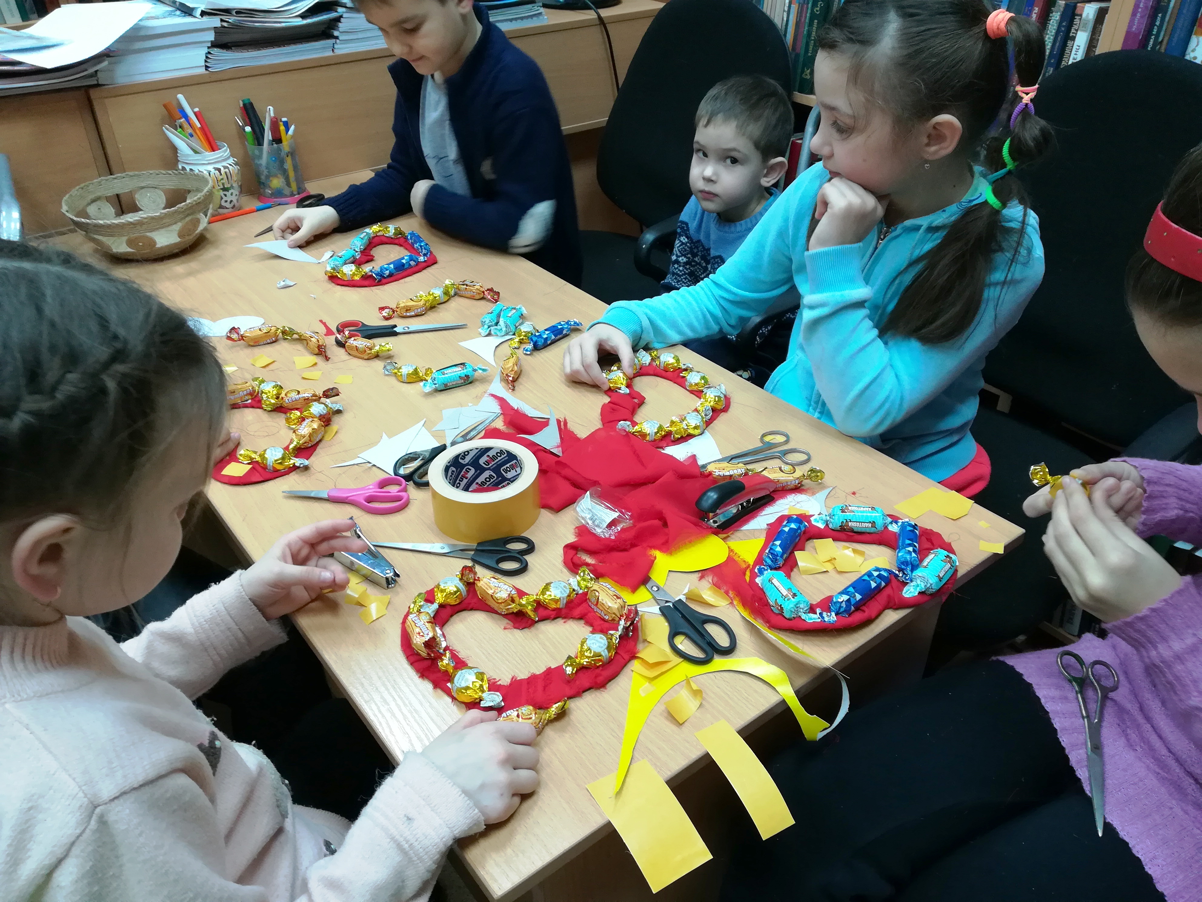 Ребятам было предложено самим сделать сладкие сердца для родных и близких.