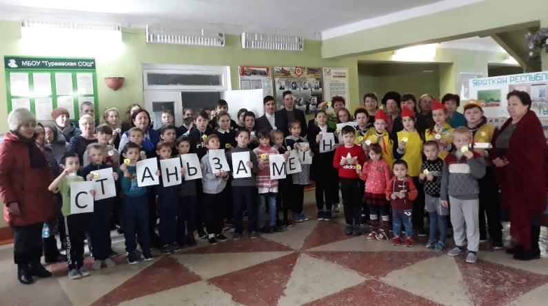 18 февраля 2020 года в 11-40 в фойе МБОУ «Тураевская СОШ» вцелях привлечения широкой общественности к проблемам обеспечения безопасности дорожного движения, снижения смертности и травматизма в результате ДТП, противодействия правонарушениям на дороге, обязательное применение пешеходами в темное время сутоксветовозвращвющихсяэлементов на одежде, провели совместную акцию«Стань заметней!» среди учащихся школы, педагогов, родителей жителейсела Тураево. В акции приняли участие отряд ЮИД, руководитель отряда ЮИД Зиннатуллина Рамзия,начальник отделения в Менделеевском районе ГБУ «БДД» Гимаева Флюра.