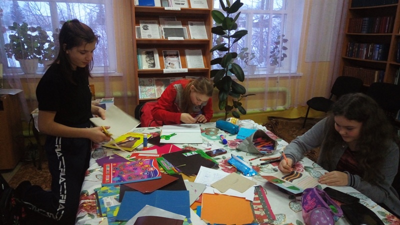 20 февраля в Тихоновской сельской библиотеке прошло занятие «Изготовление открыток к 23 февраля».