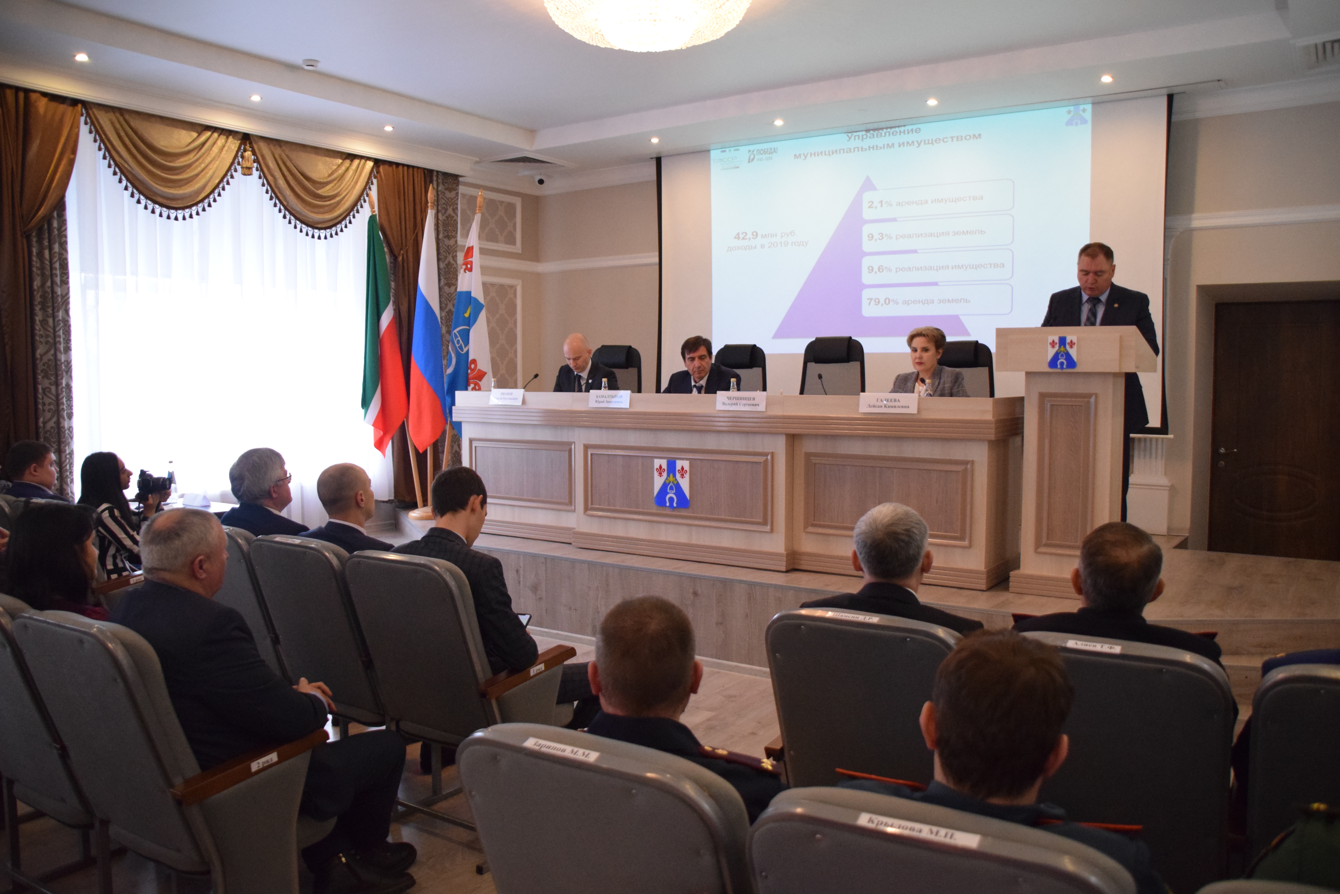 В актовом зале администрации прошло итоговое сорок девятое заседание Совета Менделеевского муниципального района Республики Татарстан , в работе которого приняли участие Заместитель Председателя Государственного Совета Республики Татарстан Юрий Камалтынов, Председатель Государственного комитета Республики Татарстан по туризму Сергей Иванов, Глава района Валерий Чершинцев, Депутаты Государственного Совета Республики Татарстан Айрат Зарипов и Эдуард Шарафиев.