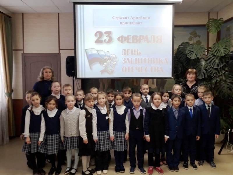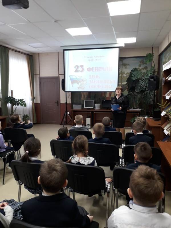 Библиотекарь Сырышева Т.Н. пригласила ребят в военный городок. В “Учебном классе” им была предложена эрудит - викторина и кроссворд, в “Библиотеке” - загадки, в “Клубе” – нужно было ответить на вопросы и вспомнить воинские песни. В ходе мероприятия использовались видеоролики, были прослушаны песни «Крейсер Аврора», «С какого парень года, с какого парохода», «Три танкиста», посмотрели отрывки из мультипликационных фильмов «Вова Сидоров идет в армию», «Каша из топора», «Три богатыря», ребята разгадывали кроссворды и отгадывали загадки. Дети активно участвовали в викторине и получили много положительных эмоций.