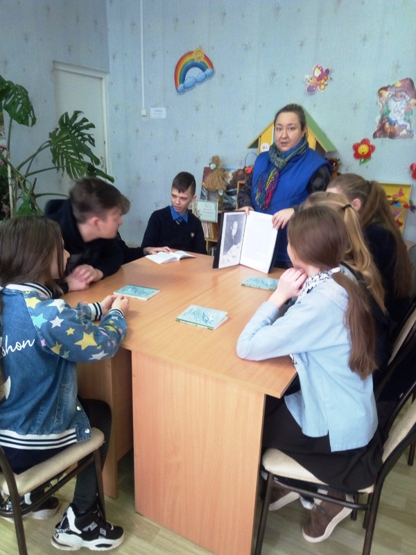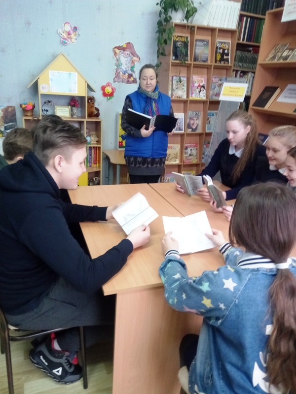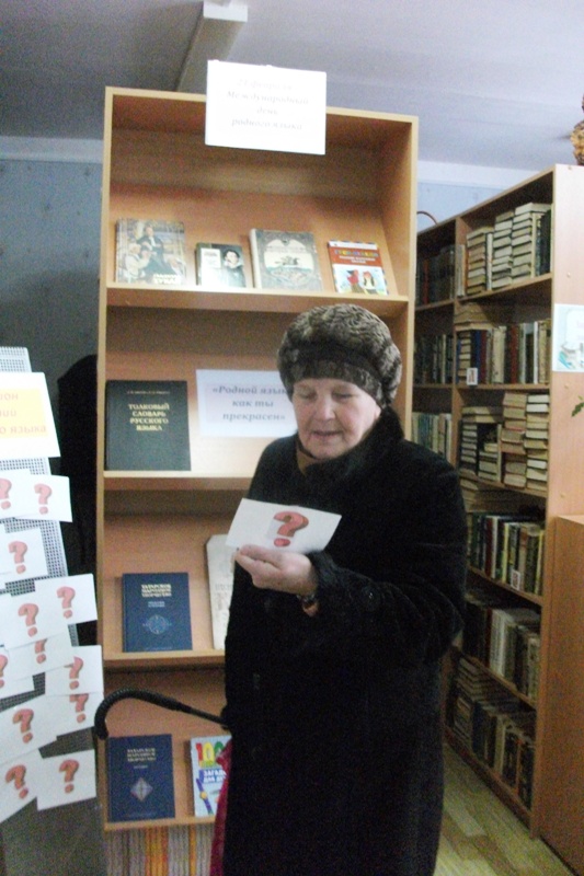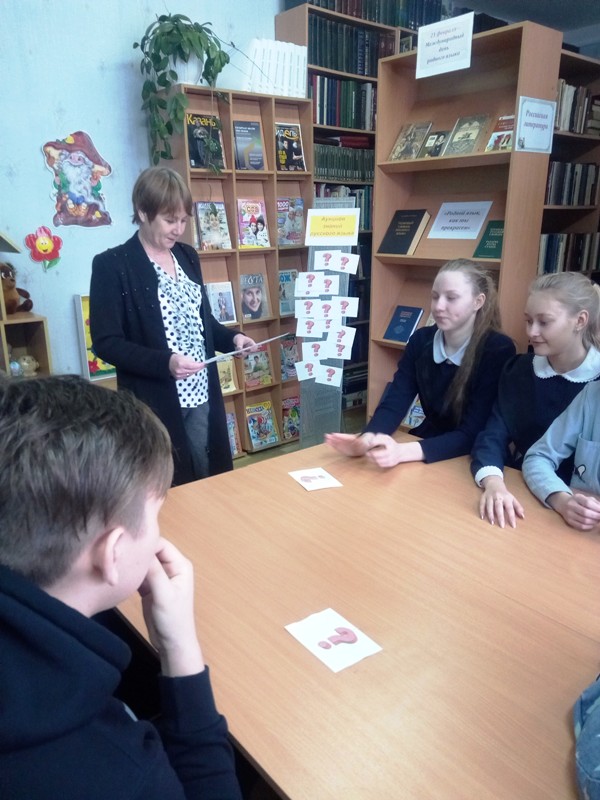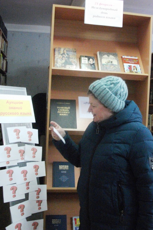 Библиотекарь Шишова Е.Б. подготовила аукцион «Из сотен разных языков я выбираю русский». Все посетители библиотеки могли проверить себя на знание русского языка. Художественный руководитель Копосова А.И. подготовила для школьников поэтический час поэта-земляка В. Колпакова «Опоздавшее счастье». Ребятам было рассказано о жизни и творчестве поэта, прочитаны стихотворения из сборника, название которого стало темой встречи. В библиотеке к мероприятию была представлена книжная выставка «Родной язык, как ты прекрасен», на которой представлены книги русского и татарского фольклора – считалочки, детские загадки, скороговорки пословицы, сказки.