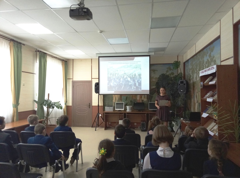 Библиотекарь Казакова Л.М. рассказала ребятам о том, что Советская армия понесла огромные потери в ходе Великой Отечественной войны и, что страшно представить, сколько еще людей погибло бы без помощи партизан, многие из которых рисковали не только собой, но и жизнями близких ради победы в кровопролитной войне. Среди партизан, которые действовали против гитлеровских оккупантов, были не только взрослые, но и дети. В Большой Советской Энциклопедии написано, что более 35 тысяч пионеров – юных защитников Родины – было награждено боевыми орденами и медалями. Среди них была и девочка по имени Лариса. О Ларисе Дорофеевне Михеенко написала в своей книге «Партизанка Лара» Надежда Надеждина. Библиотекарь познакомила присутствующих с этой книгой и зачитала несколько отрывков. Закончилась встреча минутой молчания.