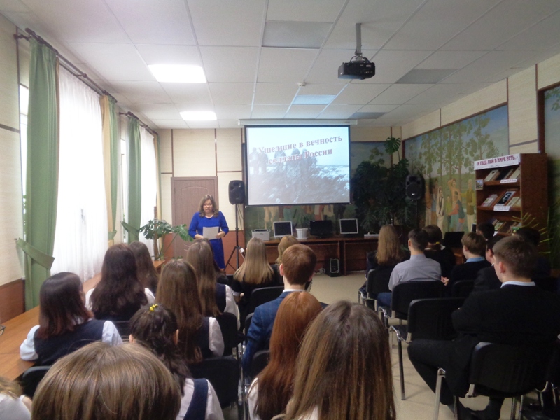 28 февраля Центральная библиотека провела для учащихся 9-11 классов школы №1 вечер памяти «Ушедшие в вечность солдаты России», посвященный героям – десантникам 6 роты 104 – парашютно- десантного полка 76 Гвардейской Псковской Краснознаменной воздушно – десантной дивизии.