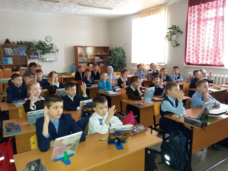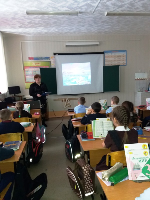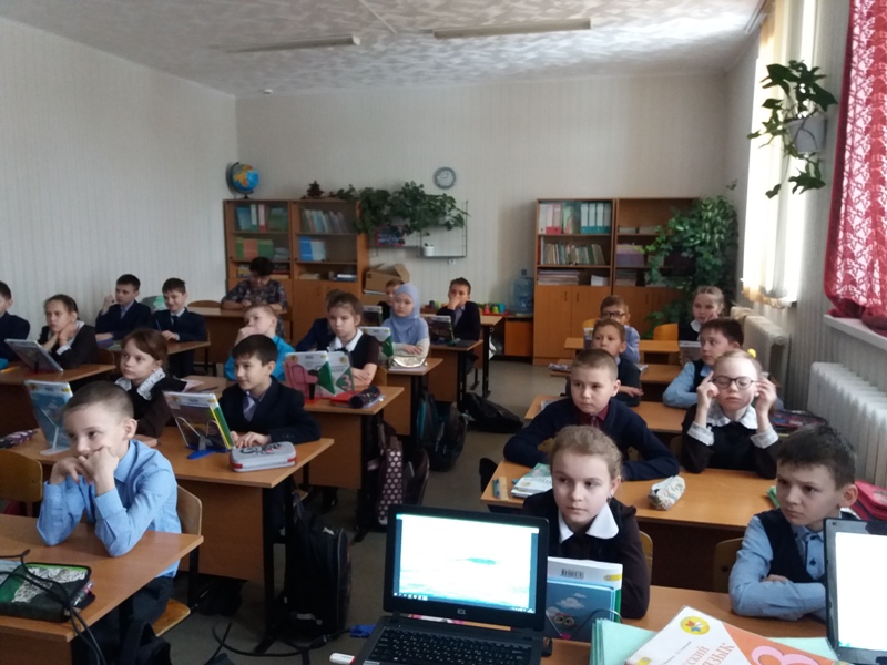 В школе № 4 для учащихся 3 «А» класса (кл. руководитель Фазлеева З.М..) Детская библиотека провела экологический час «На глубине морей и океанов» про китов и дельфинов.