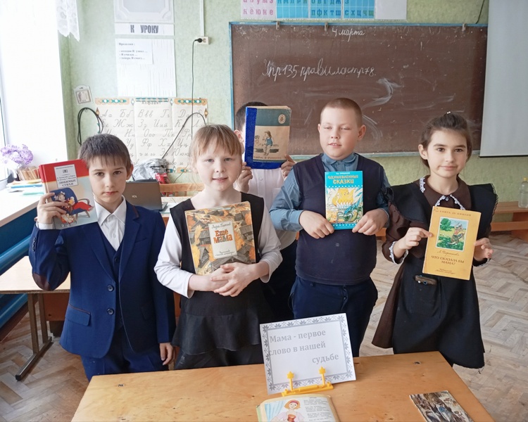 Участниками акции стали учащиеся 1.2 и 3 классов. В рамках акции библиотекой проведены громкие чтения. В этот день был прочитан рассказ А. Платонова «Ещё мама», Л .Воронковой «Что сказала бы мама» и сказка В. Хамидуллиной «Сказка о том ,как из дома ушло Хорошее Мамино Настроение». После чтения рассказов ребята активно приняли участие в обсуждении прочитанного. Затем ребята рассказали стихотворения о маме и подготовили подарки своим мамам к наступающему празднику. Оформлена книжная выставка «Мама – первое слово в нашей судьбе».