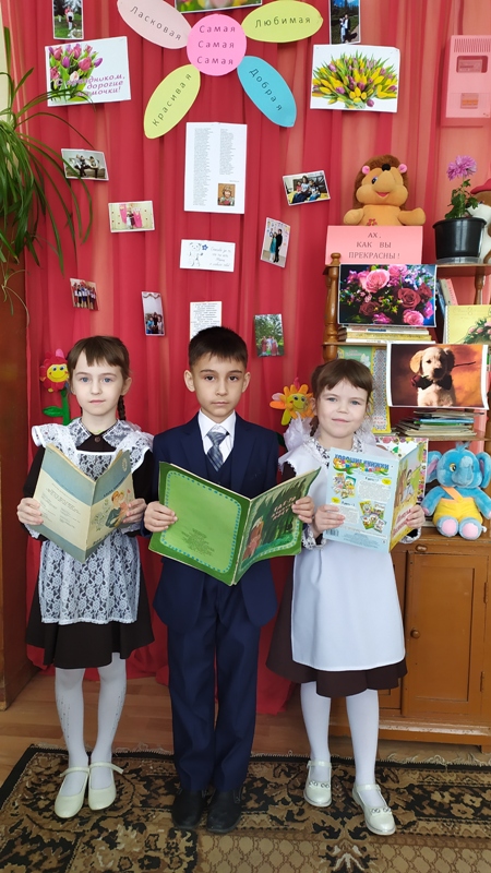 С особой добротой и нежностью читали стихи о маме Е.Благининой «Вот какая мама» и «Посидим в тишине» наши первоклашки Хурматуллина А. и Зиганшина К., а Нурисламова Р. из 3 кл. прочитала стихи татарского поэта Рината Маннана. Девочки из 4 кл. прочитали рассказы Б. Емельянова «Мамины руки» и «Мамино горе». С большим вниманием слушали ребята рассказ А.Платонова «Ещё мама» читала Паймулина М. из 2 кл. Вместе с библиотекарем читали вслух рассказ С. Георгиевской «Галина мама». Все участники акции получили удовольствие и заряд душевной теплоты от страничек добрых книг. К мероприятию была оформлена фото - книжная выставка «Мама - слово дорогое». Очень важно развивать у детей интерес к чтению и любовь к книге, научить работать вместе коллективно.