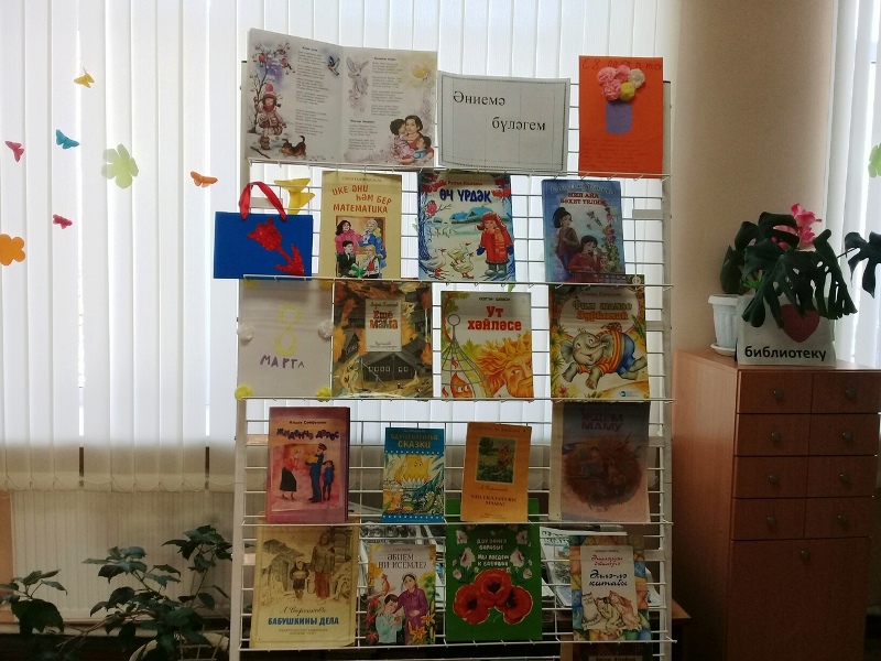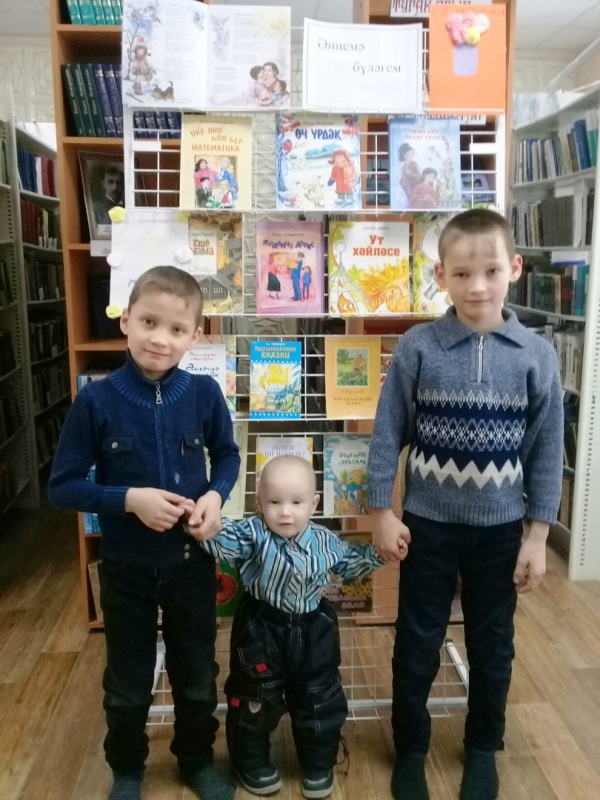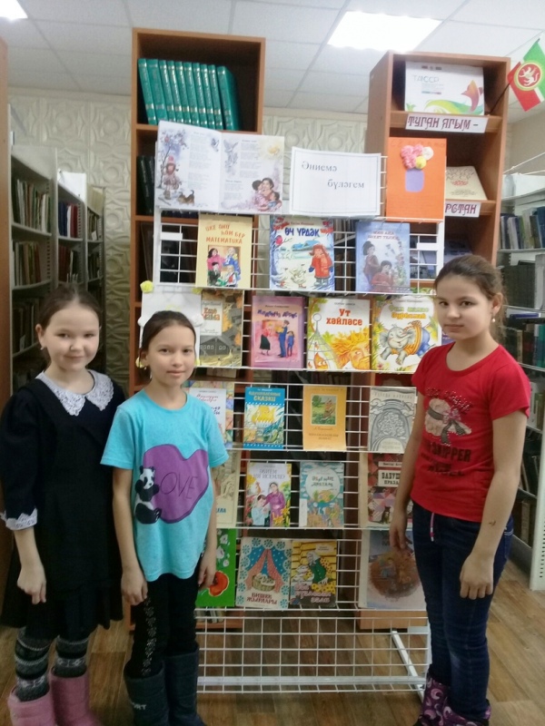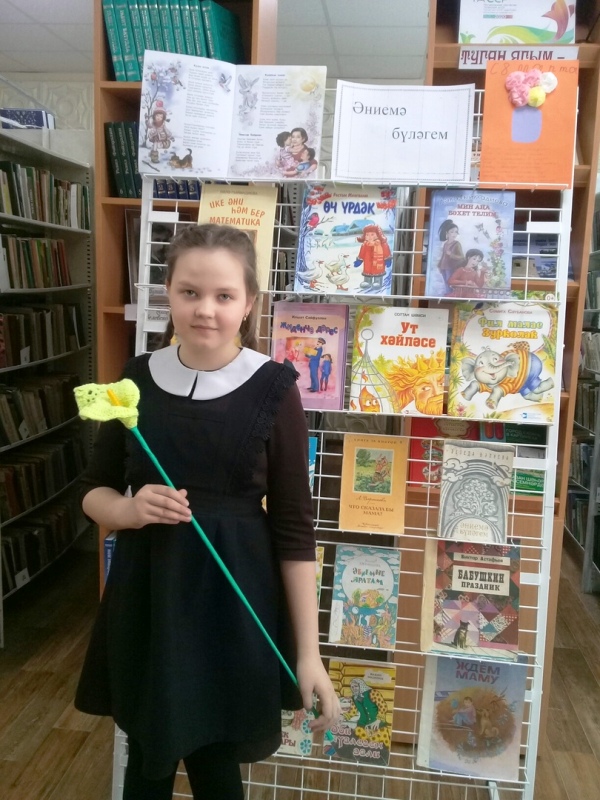 В рамках акции в библиотеке была организована книжная выставка «Эниемэ булэгем». В детском саду для дошкольников были проведены громкие чтения «Самая любимая, мамочка моя». Были прочитаны стихи про мам из книги Музагита «Бэхет юлы», отрывок из книги С. Саубановой «Фил малае Зурколак». В библиотеке были организованы мастер-классы по изготовлению открыток, цветов для мам и бабушек. Также с детьми начальных классов были прочитаны отрывки из книг Р.Валеевой «Эниемэ булэгем», Л.Воронковой «Что сказала мама?», В. Хамидуллиной «Одушевленные сказки».