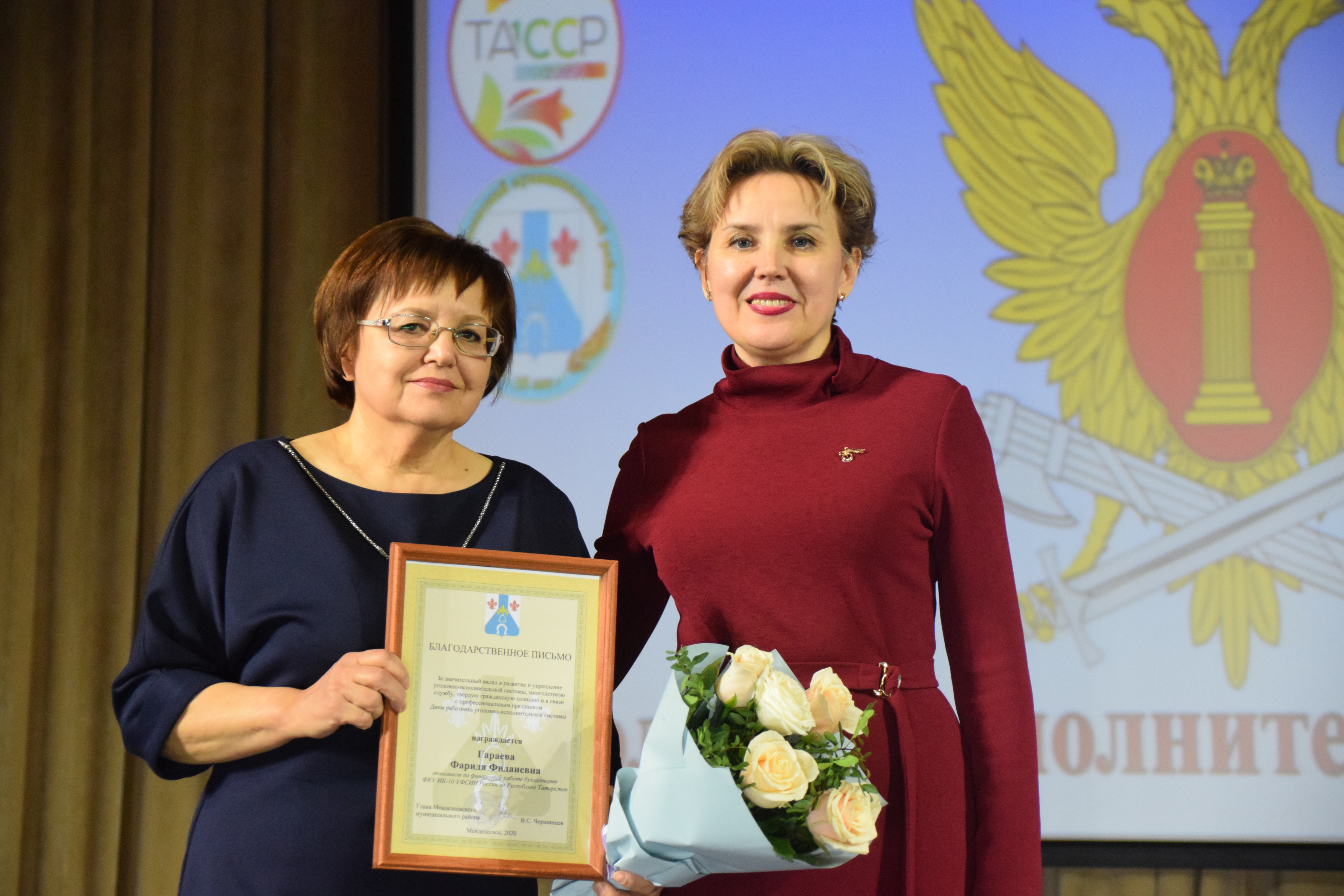 Лейсан Галеева вручила награды лучшими сотрудникам от имени главы района Валерия Чершинцева. Благодарственным письмом главы района награждён начальник ИК-10 Сергей Харкевич.