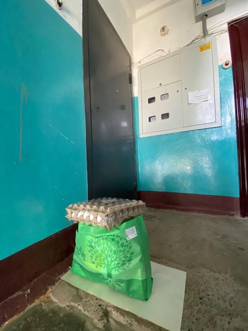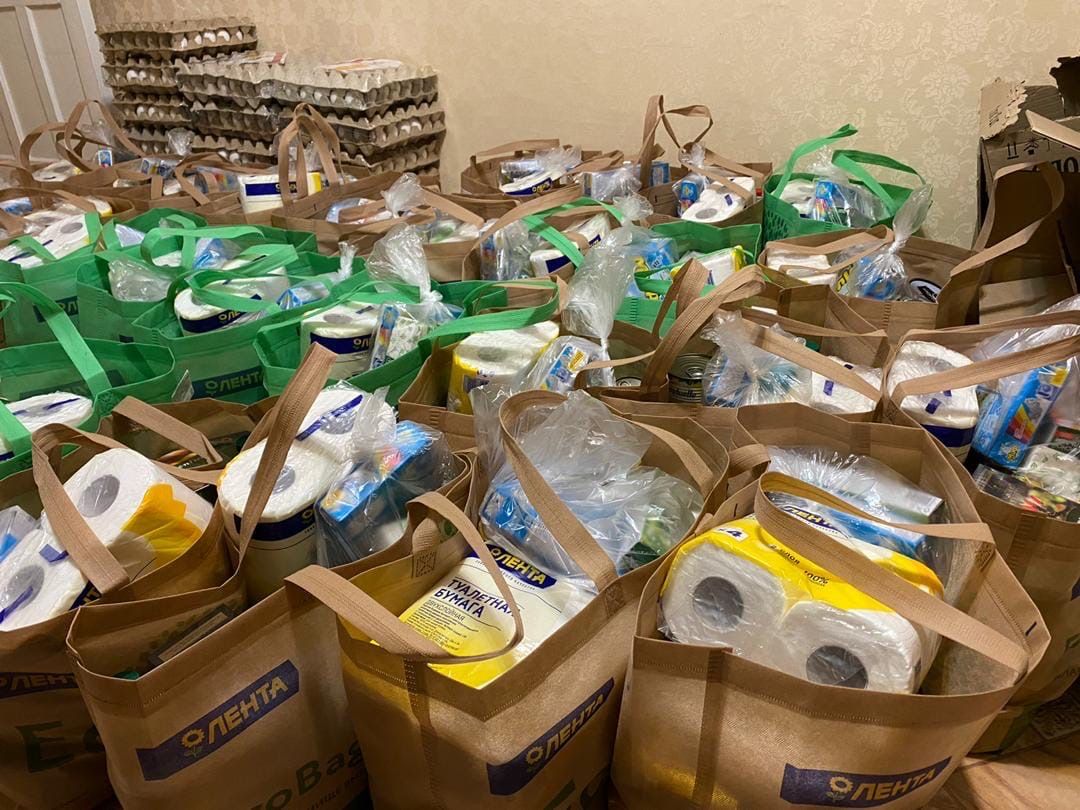 По словам ребят, они соблюдают все меры безопасности, оставляют продуктовые наборы около двери каждой квартиры на чистом листе бумаге.