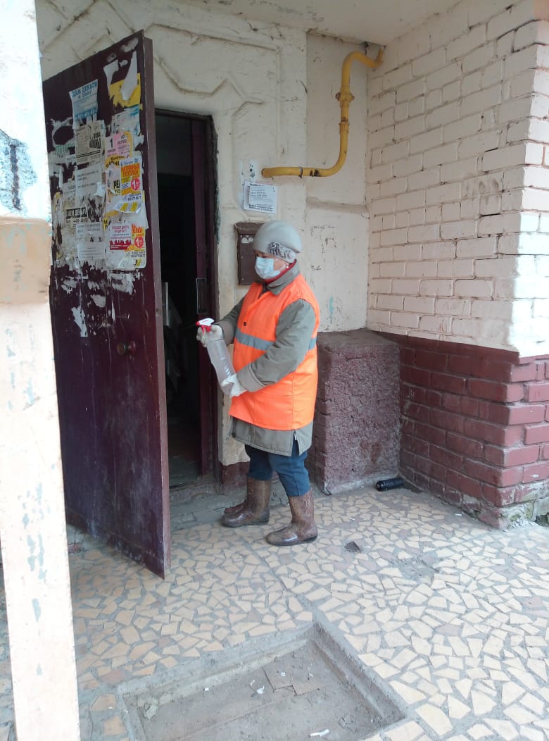 В частности, сотрудники Управляющей компании обрабатывают лестничные площадки, входные двери, ручки, перила. Работники выходят, приступая с утра к работе, соблюдая все меры гигиены.