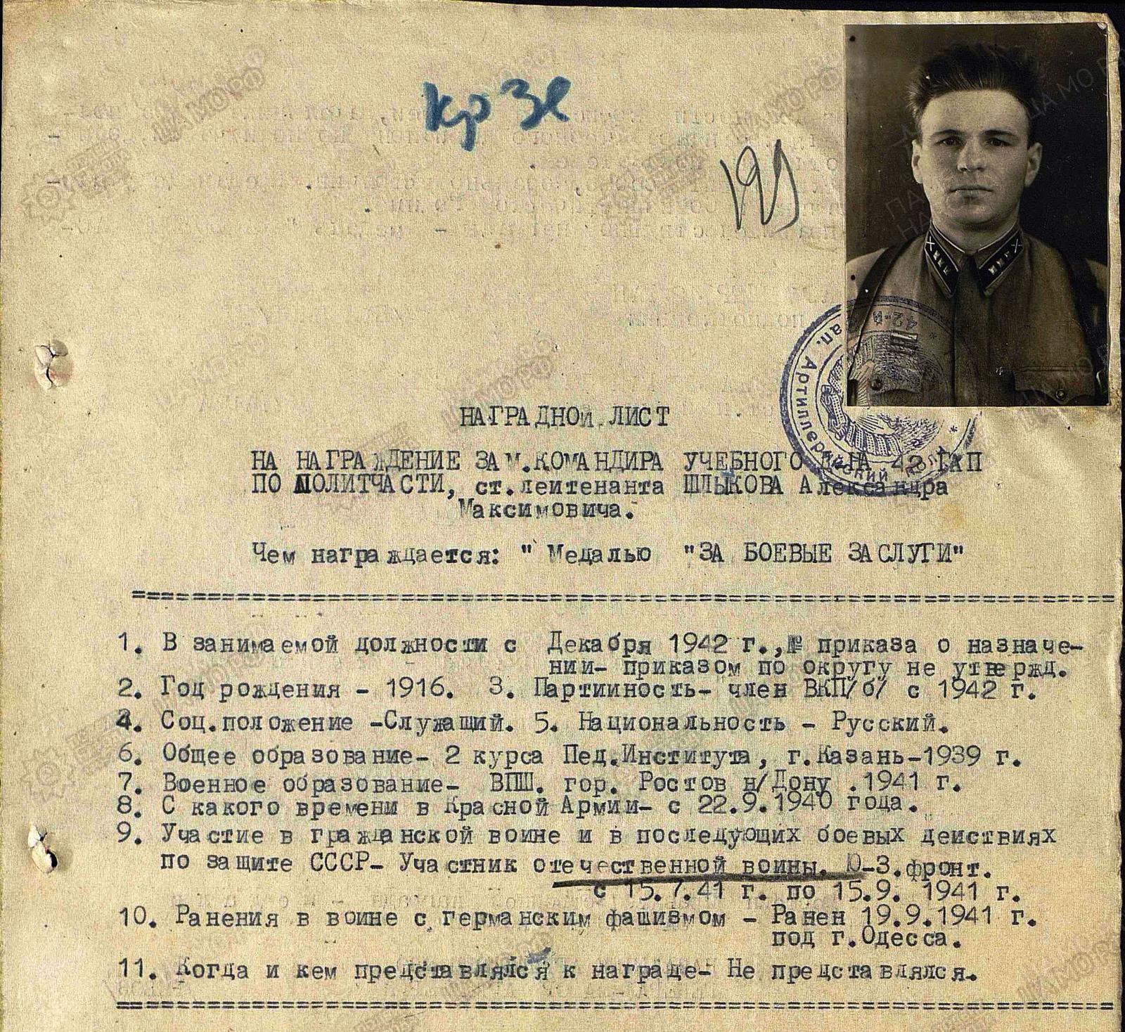 Сотрудников музея удивил факт наличия в наградном листе А.Шлыкова фотографии, на сегодня это единственный случай в нашей практике.