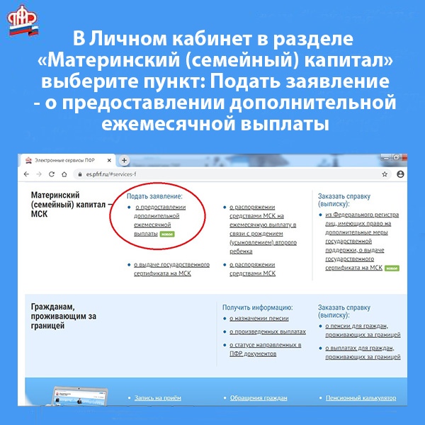Как подать заявление на дополнительную выплату 5 тыс.руб. через Личный кабинет на сайте ПФР
