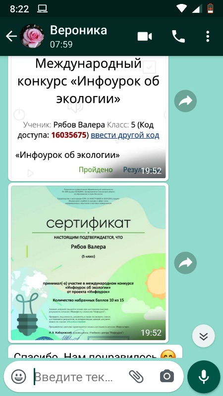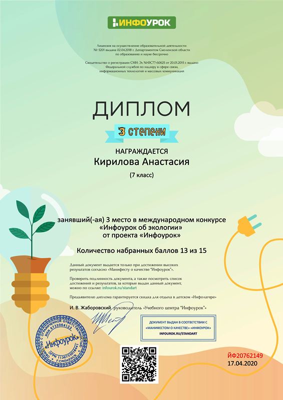 Все участники конкурса, получив коды доступа, могли ответить на 15 интересных вопросов конкурса, которые помогут не только узнать о проблемах экологии, но и научат бережнее относиться к природе. После ответов ребята сразу узнали свой результат и получили дипломы, свидетельства. Всем участникам конкурса мы бесплатно подарим трекер экопривычек, который поможет каждому ребенку легко соблюдать простые, но важные для экологии правила.. Лучший способ проявить заботу о природе и экологии– соблюдать их каждый день.