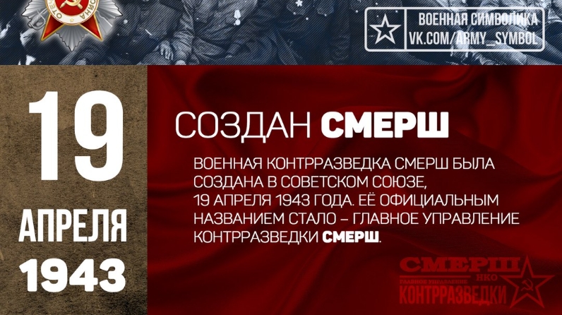 19 апреля 1943 года Постановлением Совнаркома СССР Управление особых отделов и Морской отдел были изъяты из ведения НКВД. На их базе образовывались Главное управление контрразведки НКО «Смерш» («Смерть шпионам») и, несколько позднее, Управление контрразведки «Смерш» Наркомата ВМФ.