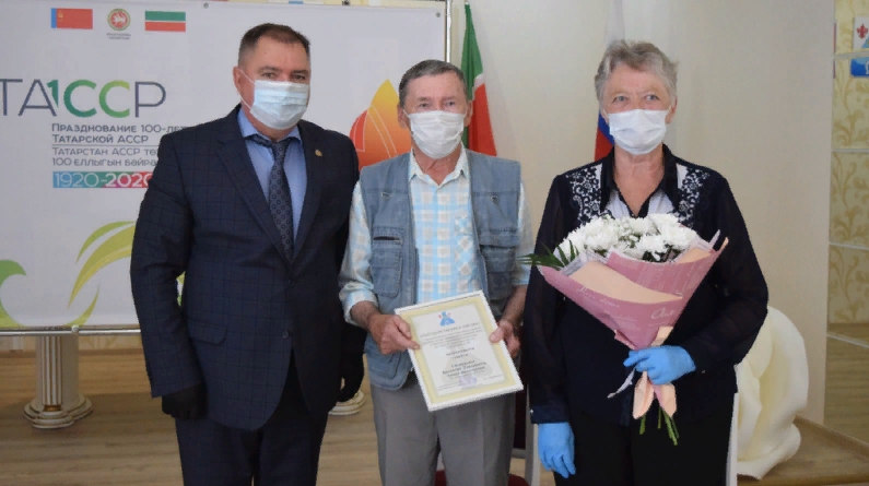 С этим знаменательным событием супругов поздравил Глава района Валерий Чершинцев, вручил им памятную медаль 100-летия ТАССР, цветы, подарки. К словам поздравлений присоединились председатель ТОС «Карповец» Гульсина Загрутдинова, представители Химического завода им.Л.Я.Карпова, пожелали им здоровья, долгих лет жизни и благополучия.