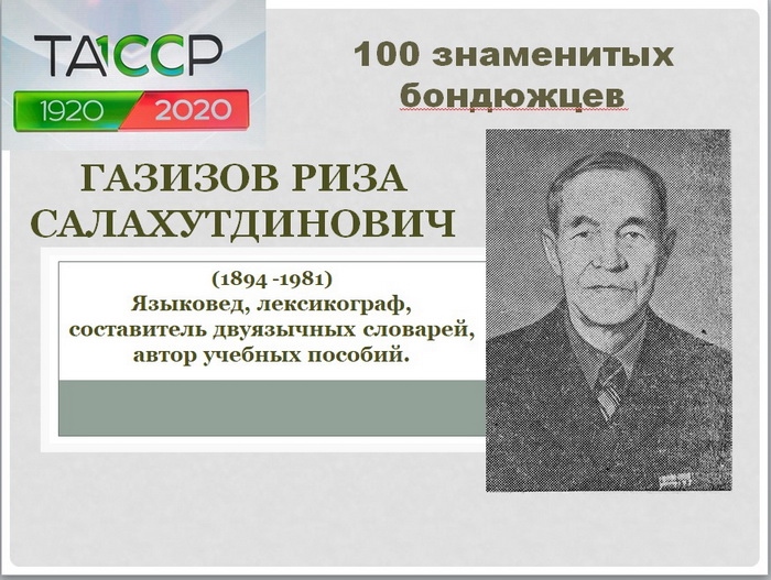 Газизов Ризаутдин Салахутдинович (Риза Газизов) – известный татарский языковед, лексикограф, автор многочисленных учебников и методических пособий по русскому и татарскому языкам.