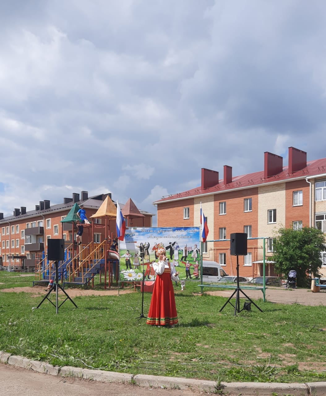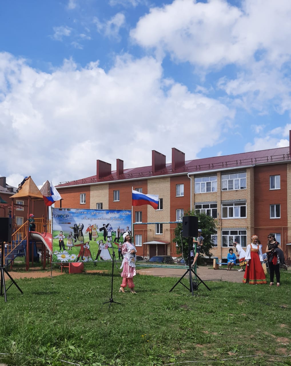 В честь Дня России в Менделеевске во дворе по адресу ул.Татарстана,5 для жителей дома состоялся концерт в рамках всероссийской акции "Поющий двор".