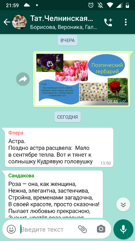 С древних времён цветы занимают особое место в творчестве поэтов и писателей всего мира. Мы знаем о библейской легенде, в которой лилия выросла из слез Евы, изгнанной из рая, о новгородском купце Садко и отвергнутой им морской царевне, из слёз которой появились ландыши, о обмене венками и поиске цветка папоротника в ночь на Ивана Купалу. Именно эта тема стала основной в проведенном 18 июня поэтическом гербарии «К цветку цветок сплетай венок» в Тат. Челнинской сельской библиотеке. Все желающие прислали в группу библиотеки в WhatsApp стихотворения о любимом цветке.