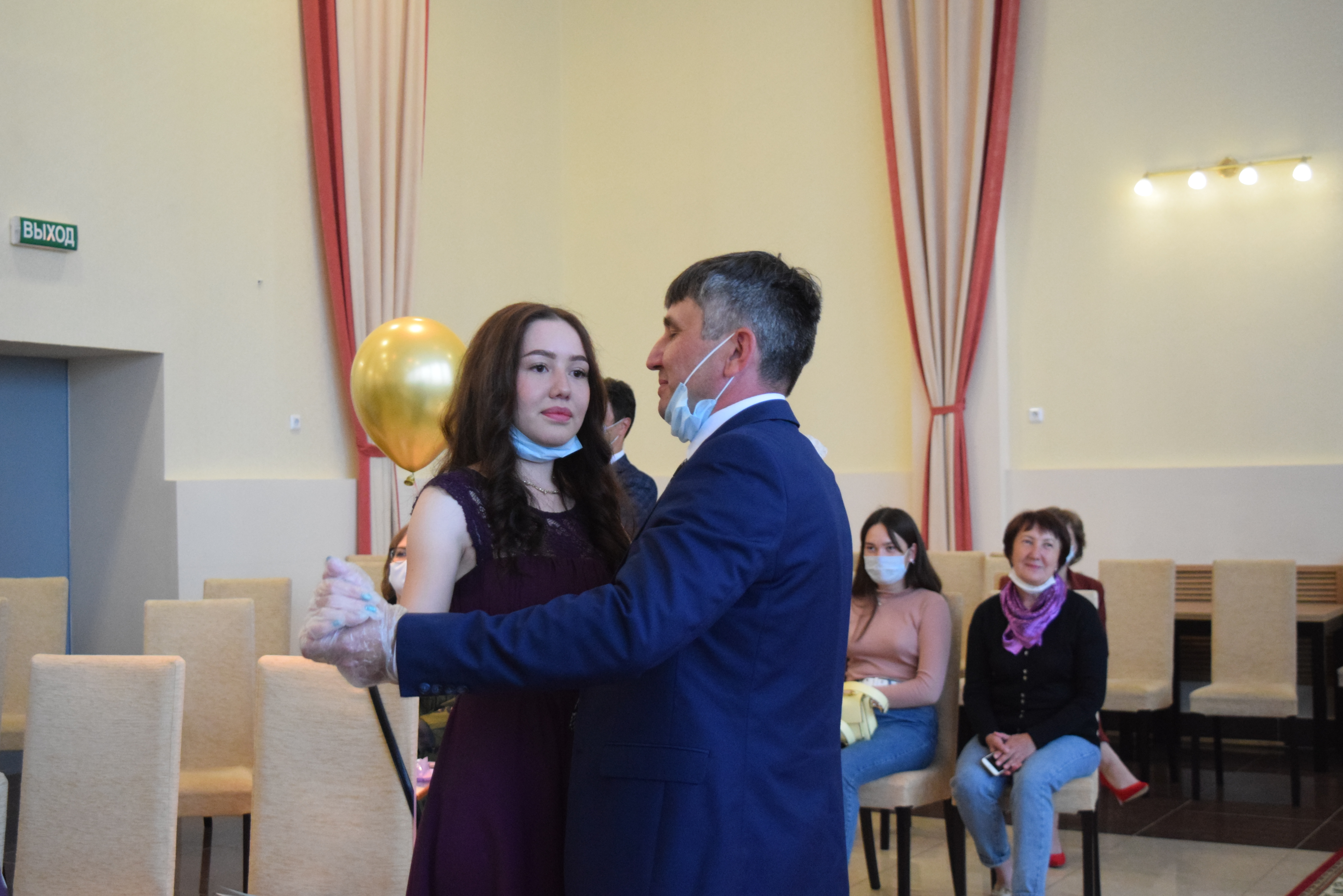 Ответные слова благодарности родителям и педагогам прозвучали от всех выпускников в лице ученицы МБОУ "СОШ №1". Также родители с детьми исполнили традиционный выпускной танец - вальс.