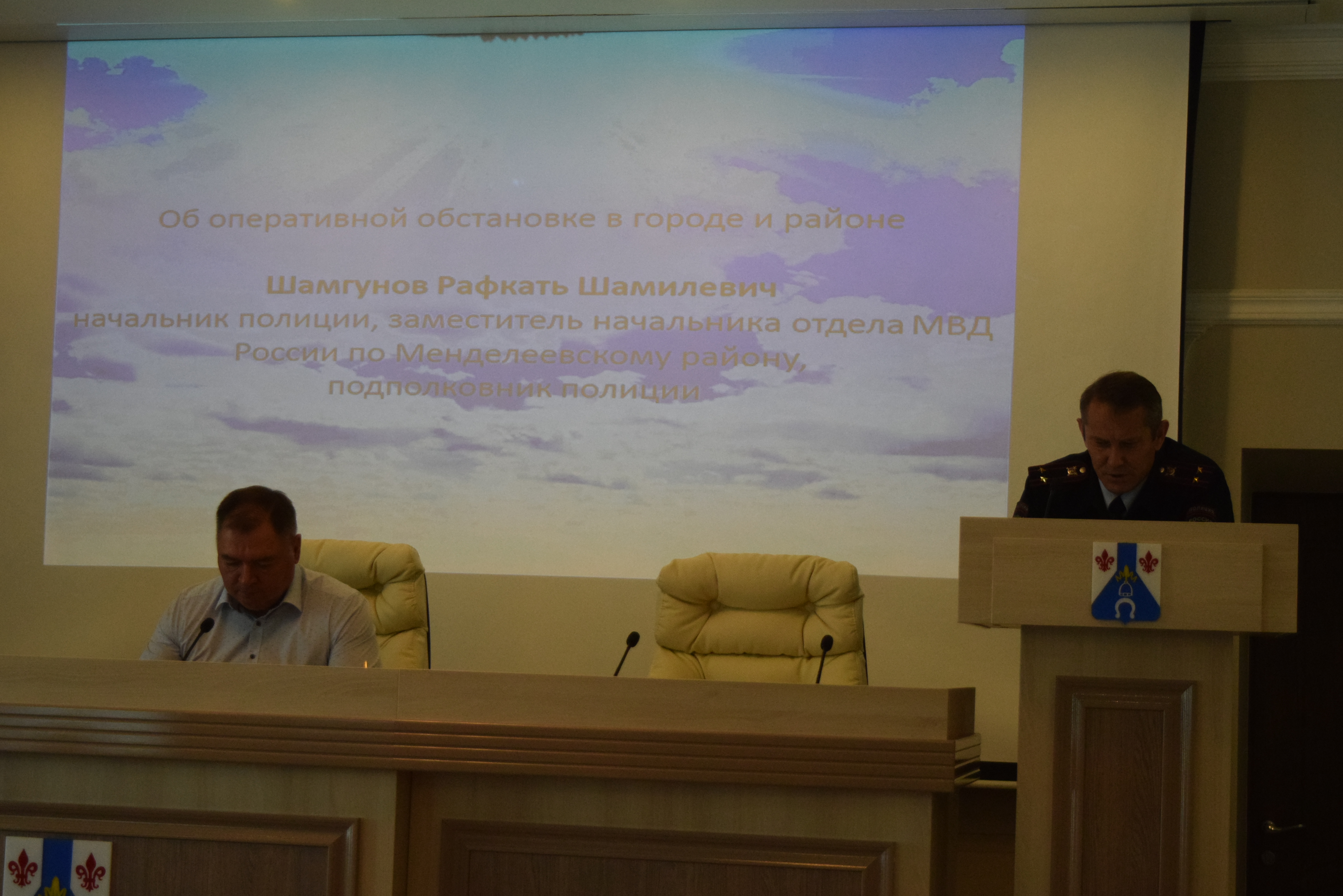 Об оперативной обстановке в городе и районе доложил Шамгунов Рафкать Шамильевич – начальник полиции, заместитель начальника отдела МВД России по Менделеевскому району, подполковник полиции. Всего за прошедшую неделю поступило 190 сообщений.