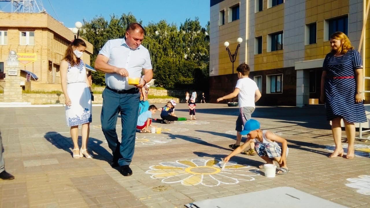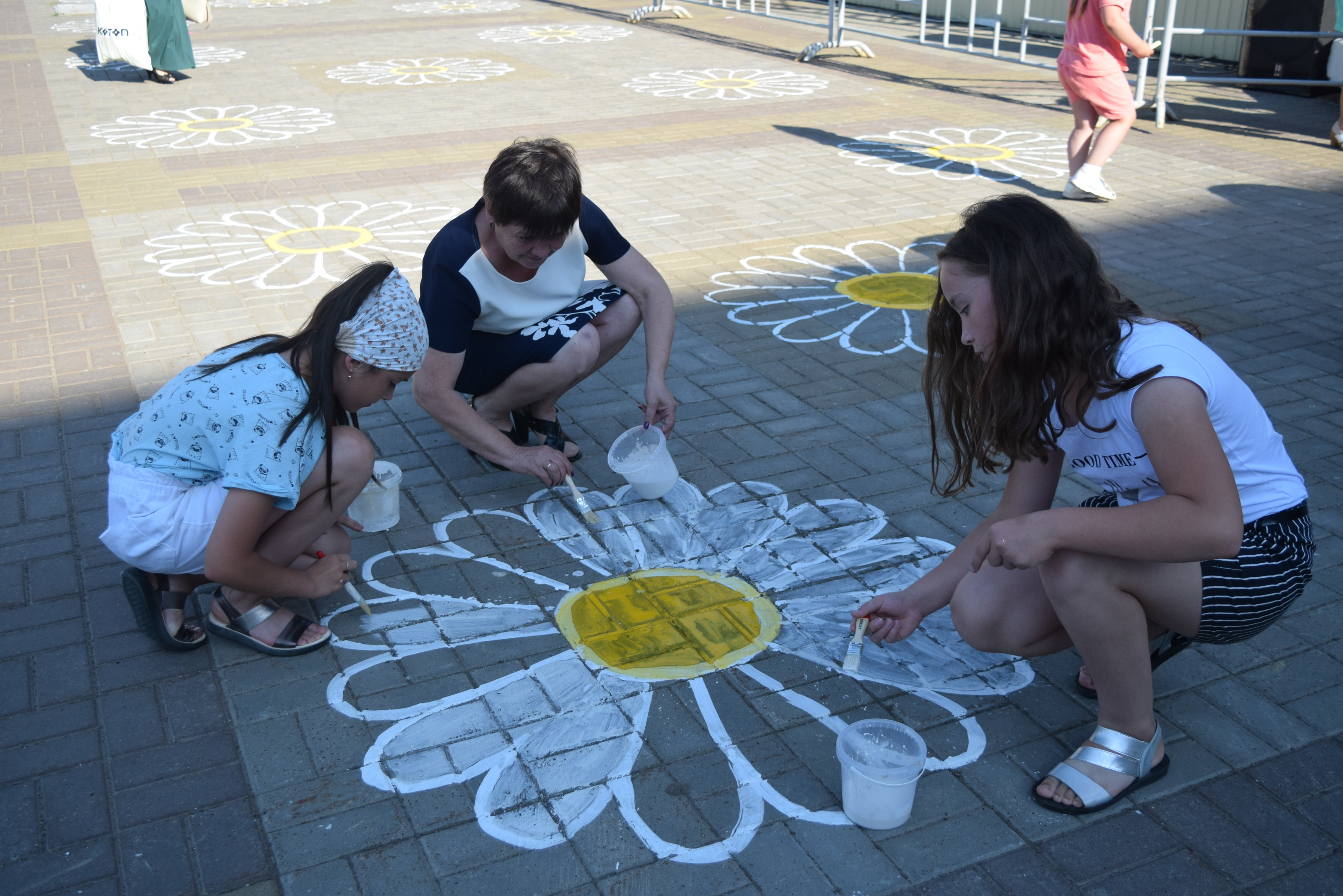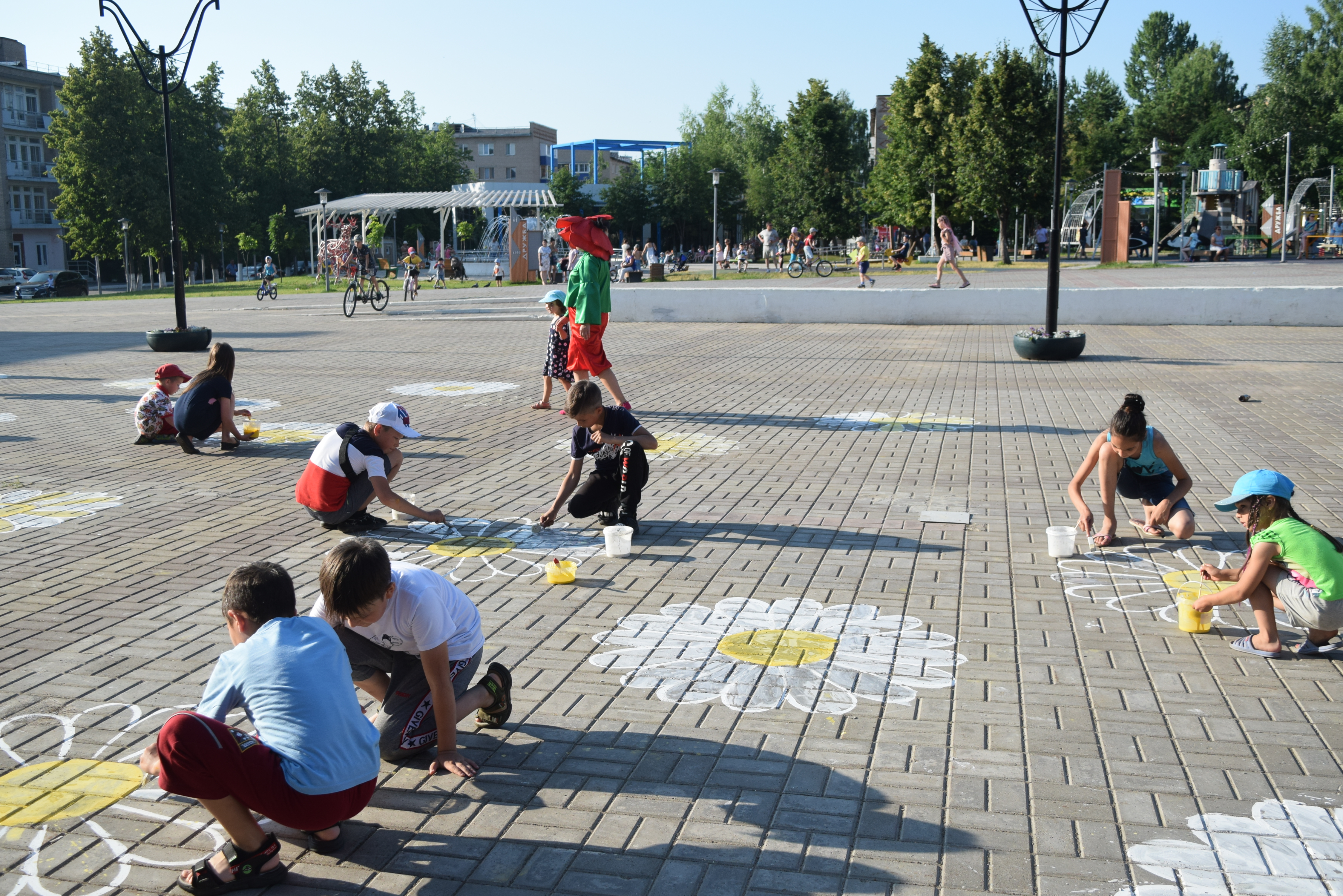 Также для детей была организована анимационная программа, в которой они могли принять участие и разукрасить ромашки на площади. Получилось очень яркое и веселое "поле ромашек".