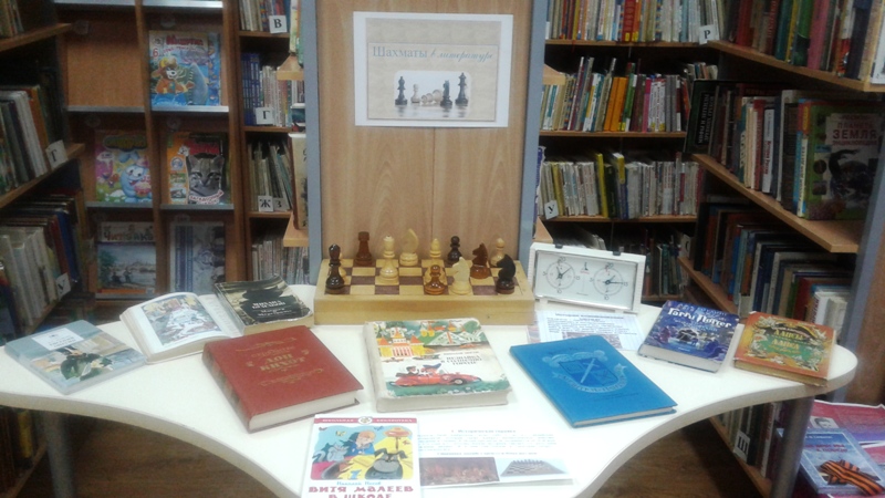 В Детской библиотеке оформлена книжная выставка «Шахматы в литературе». Стихи, рассказы и романы, сказки, фэнтэзи и детективы с шахматным элементом — все эти книги вы найдете на нашей выставке. Мы приглашаем вас, посетить выставку прекрасных художественных книг, в сюжеты которых вплетаются шахматы и сама игра, ИГРА ФЕРЗЕЙ и КОРОЛЕЙ.