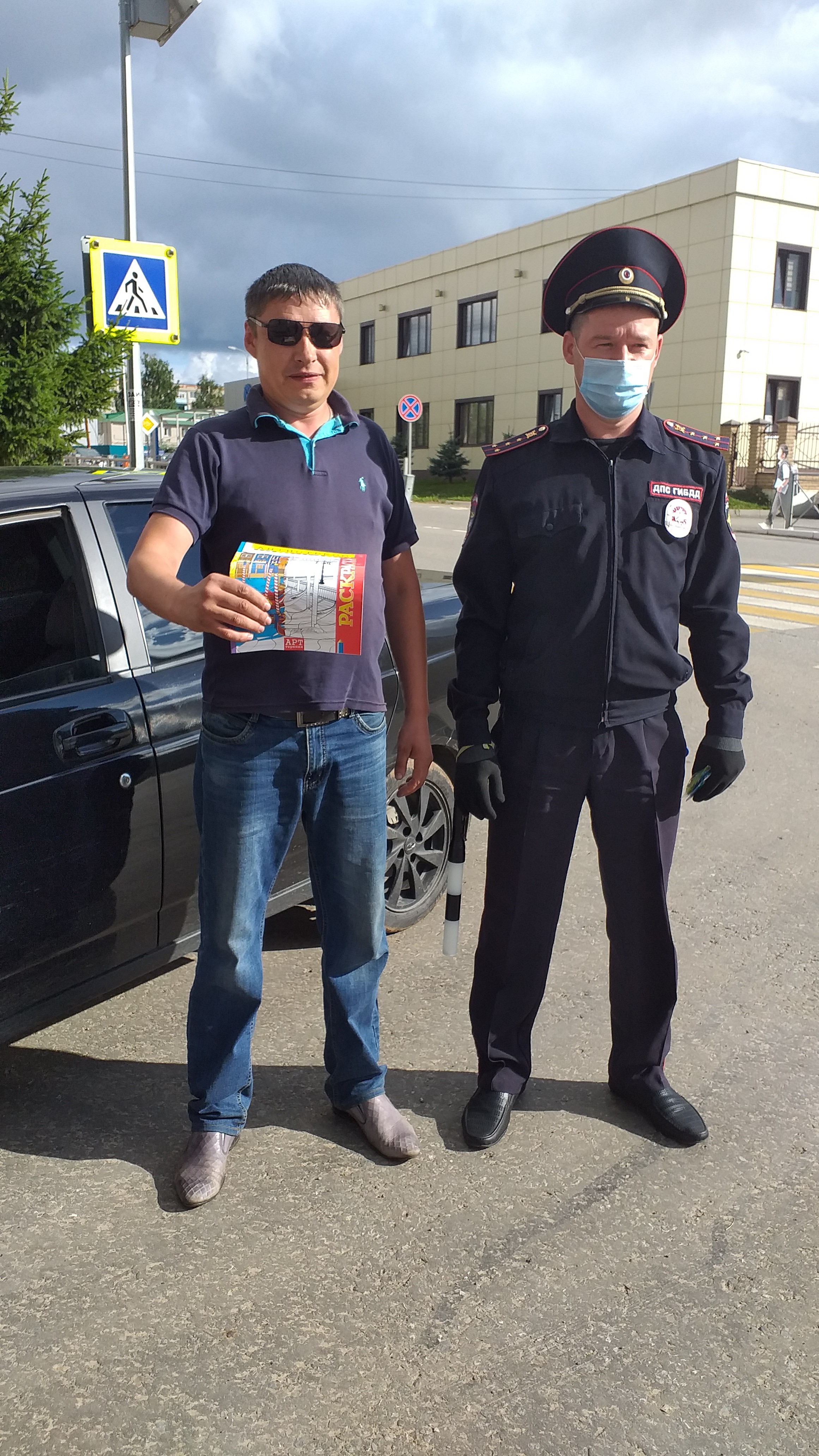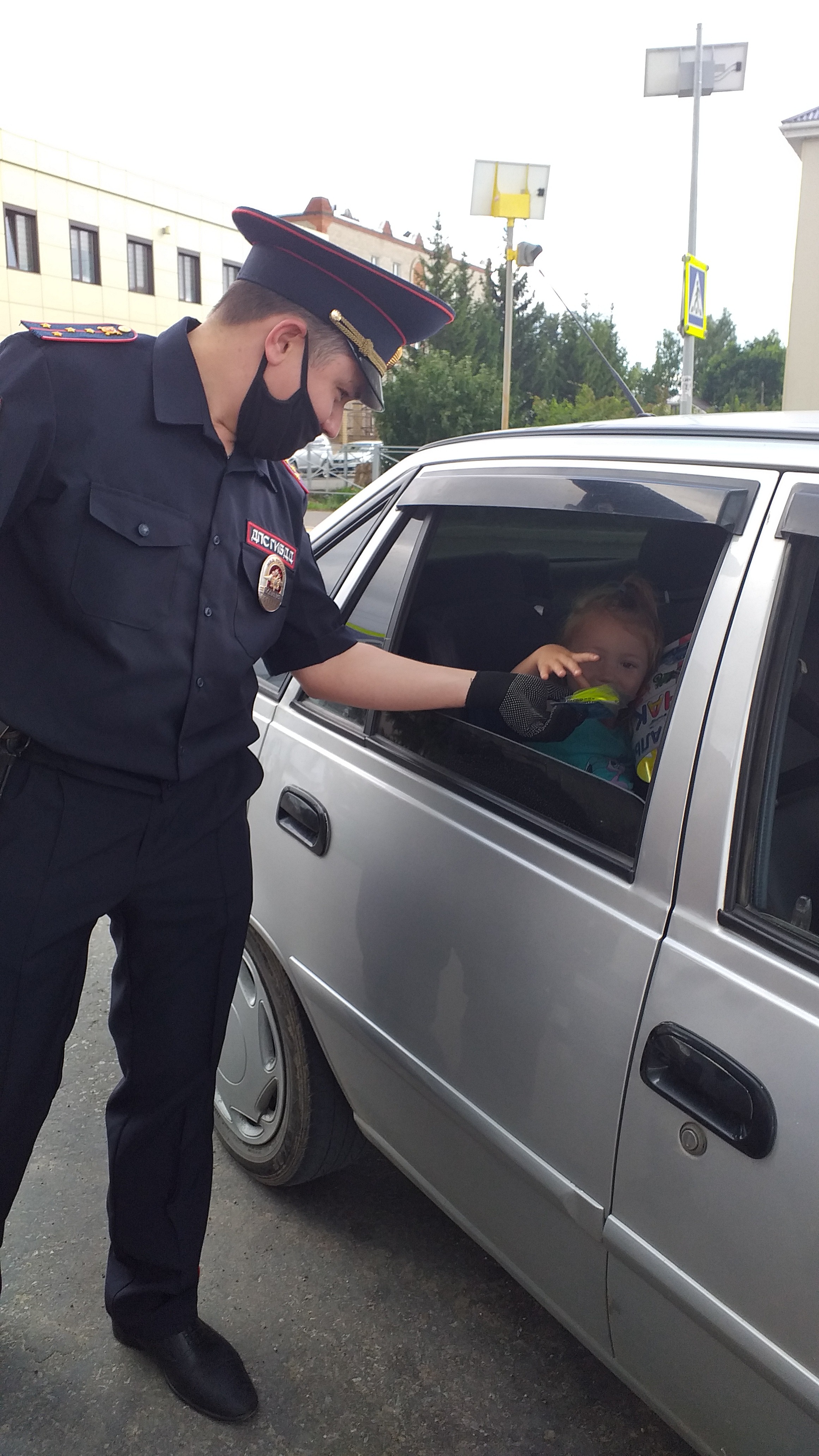 24 июля 2020 г. с 16-00 до 18-00 часов на стоянке перед перед зданием ГИБДД сотрудники Госавтоинспекции: начальник ОГИБДД отдела МВД России по Менделеевскому району капитан полиции Харисов Руслан Миннасович, старший инспектор по ИАЗ ОГИБДД капитан полиции Хусаинов Салават Саетович, начальник отделения в Менделеевском районе ОП ТУ в г. Наб. Челны ГБУ «БДД» Гимаева Флюра, провели акцию «Ребёнок - главный пассажир».