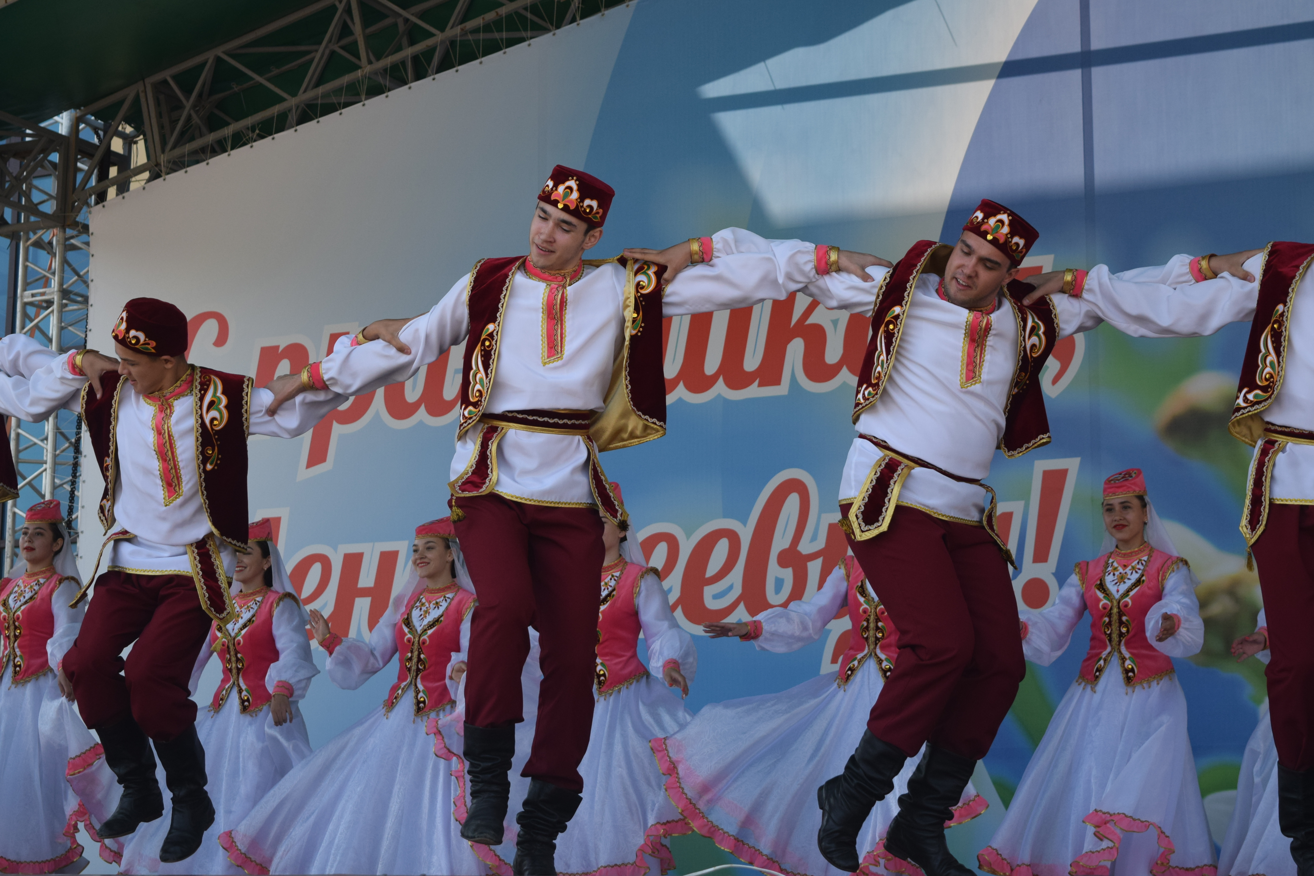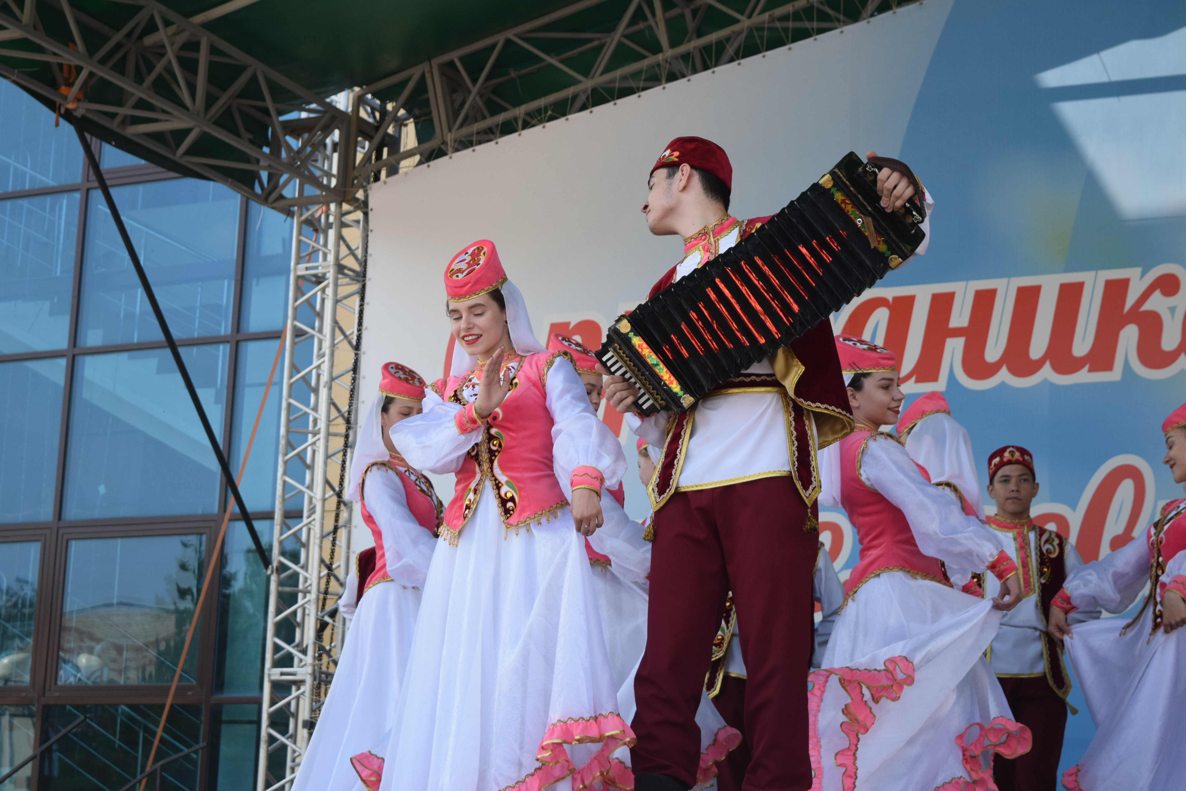 В праздничном мероприятии также приняли участие творческие коллективы города, исполнив гимн Республики Татарстан, танцевальные номера и песни.