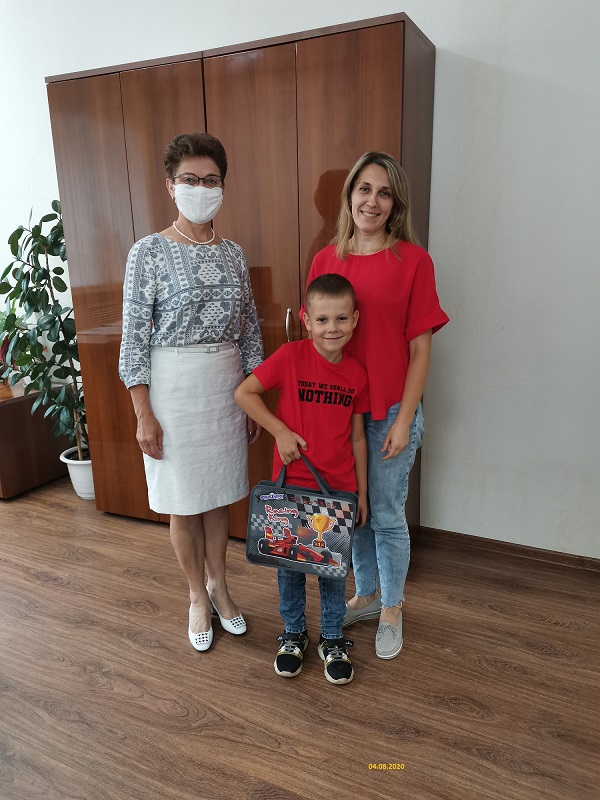 Руководитель Клиентской службы Раушан Иштанова вручила будущему первокласснику Ориничеву Данилу памятный подарок и пожелала ему успешного нового учебного года, интересных впечатлений и отличных оценок! Данил собирается стать учеником третьей школы.