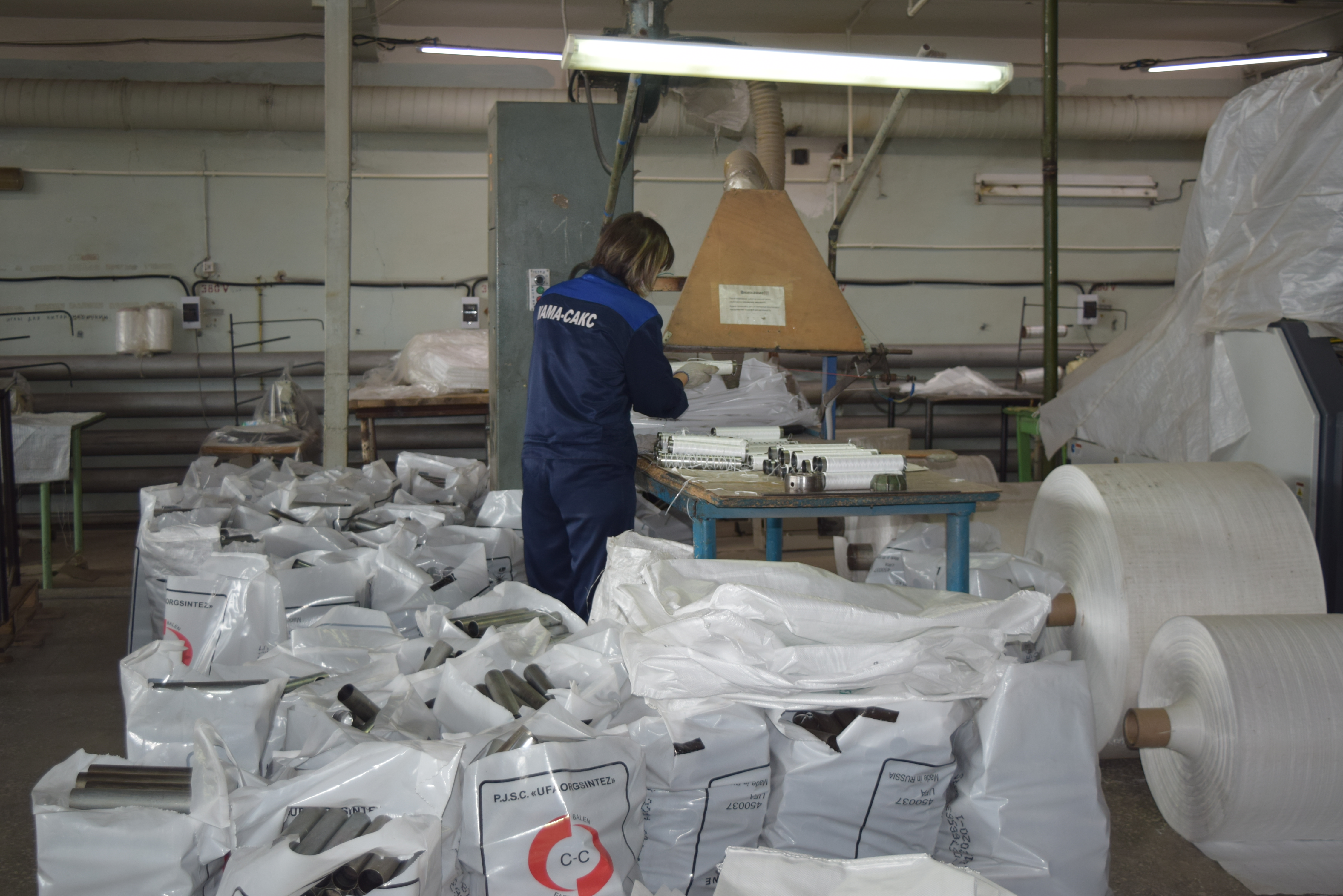 По словам Ильнара Марданова генерального директора ООО "Кама - Сакс" на сегодняшний день на предприятии трудится 94 рабочих, максимальный же объем производства мешков достигает 1 200 000 штук.