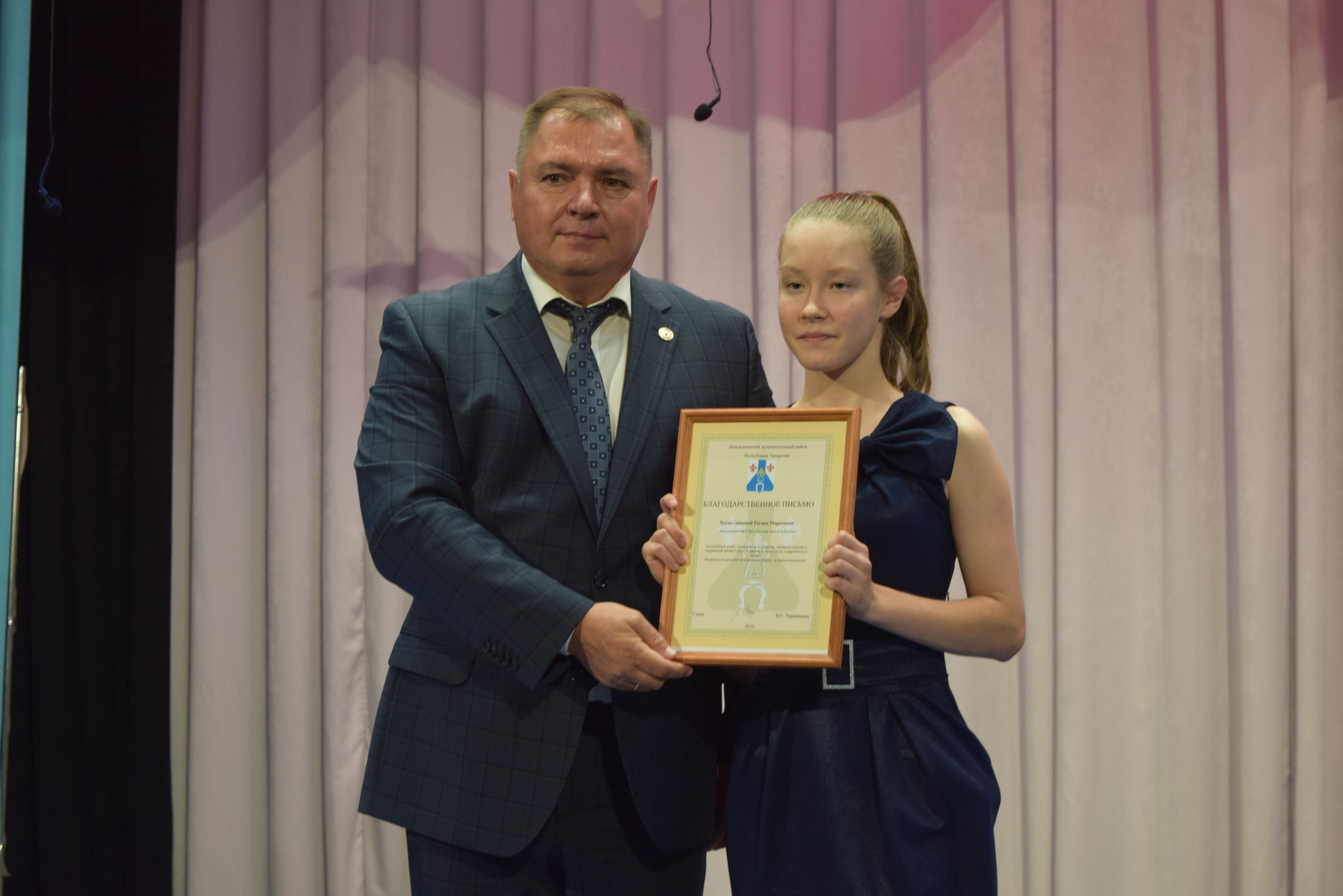 С поздравительными словами к выпускникам, родителям и педагогам обратился Глава района Валерий Чершинцев, вручив Благодарственные письма.