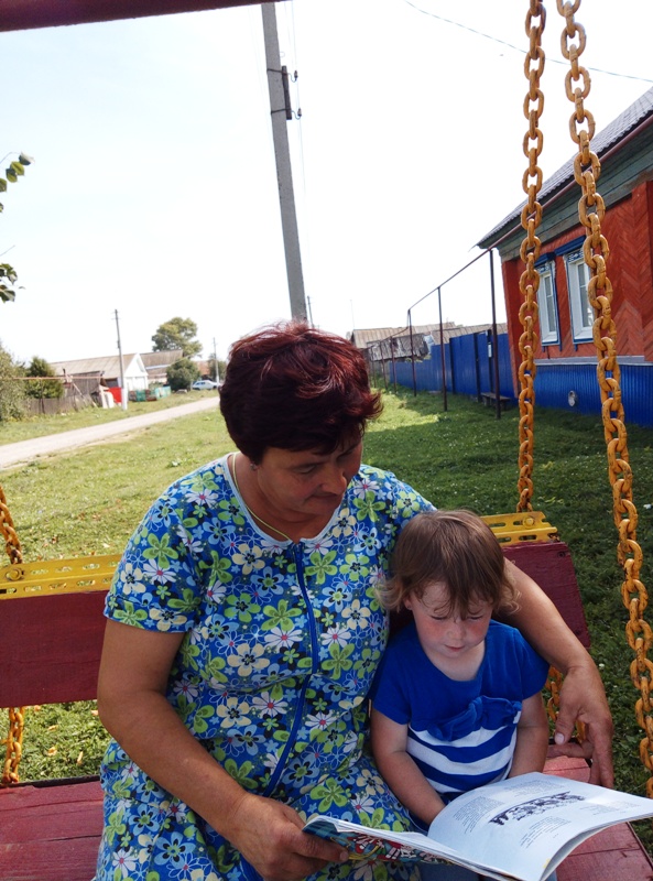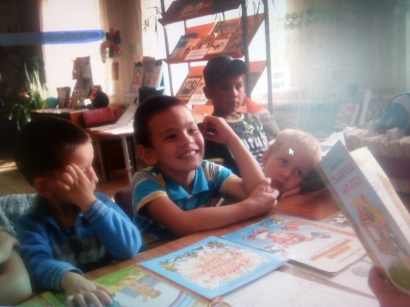 На громкие чтения в рамках акции пришли читатели –дошкольники. Для них была подготовлена книжная выставка «У сказки чистая душа», где были представлены сказки для добрых сердец современных писателей Светланы Савицкой, Валентины Черняевой и другие книги из серии «Современные авторы-детям». В ходе мероприятия участникам была прочитана книга Веры Хамидуллиной «Сказка про солнышко». Также малыши рассматривали рисунки других книг. Вечером акция продолжилась уже на улице. Получилось так: вечерочком на качелях с книжкой на ладошке. Читала детям стихи С. Савицкой «Три лягушки».