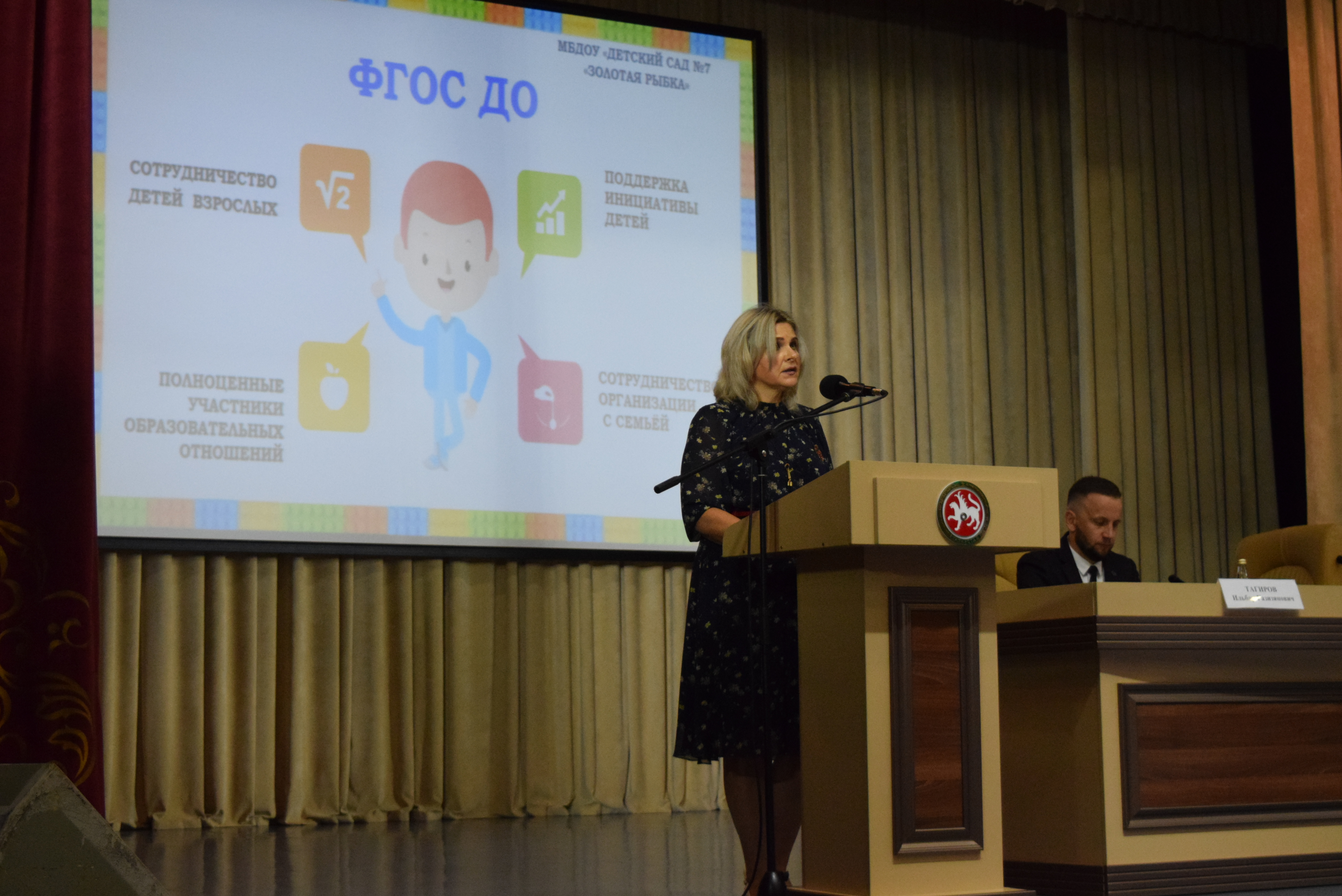 Заместитель заведующего по воспитательной работе детского сада № 7 «Золотая рыбка» Любовь Файрузова предоставила доклад на тему: «Проектная деятельность как фактор успешности воспитания и обучения в рамках реализации ФГОС ДОО (Федеральных государственных образовательных стандартов дошкольного образования)».