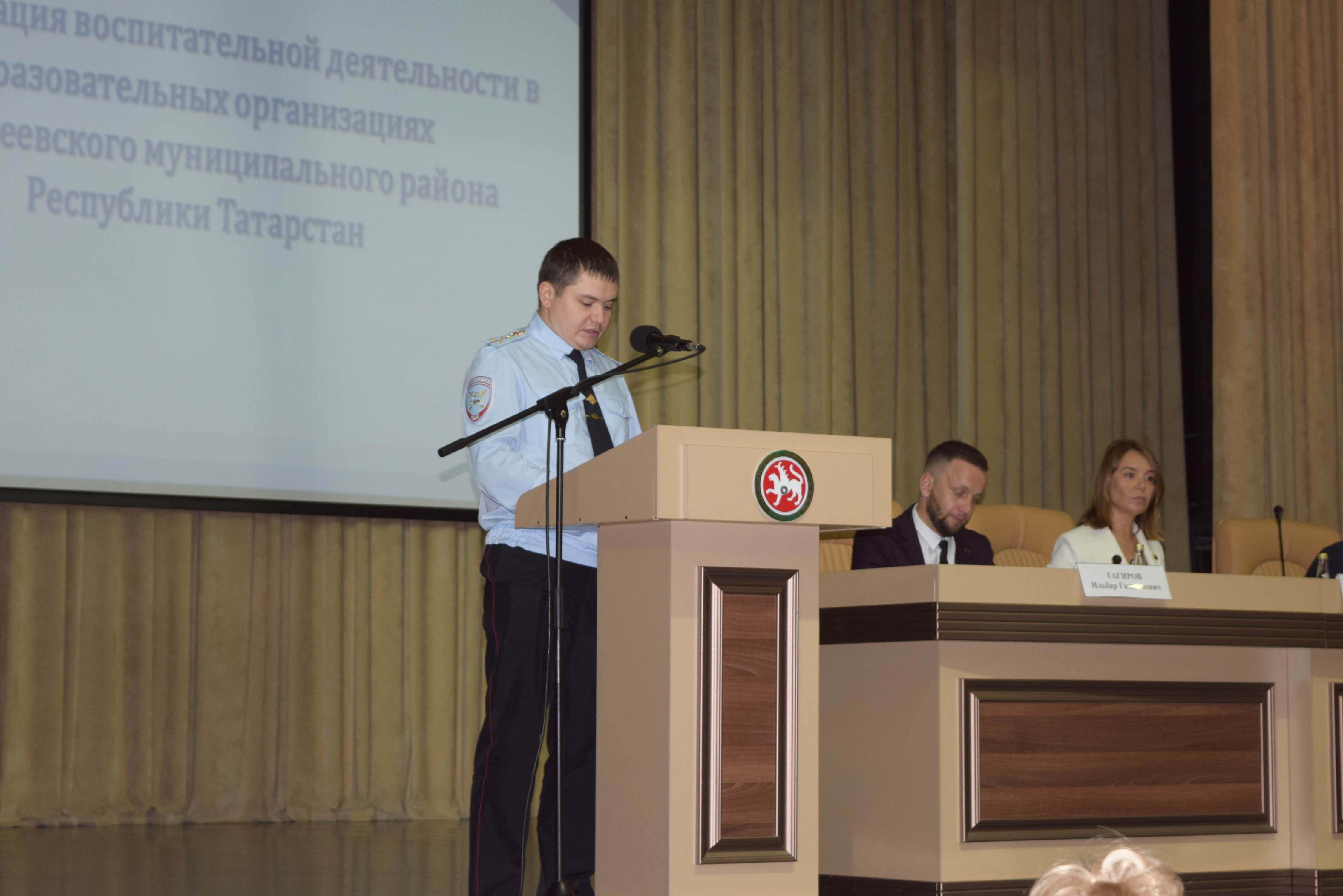 Начальник ОГИБДД отдела МВД России по Менделеевскому району Республики Татарстан, капитан полиции Руслан Харисов выступил на тему: «Детский дорожно-транспортный травматизм».