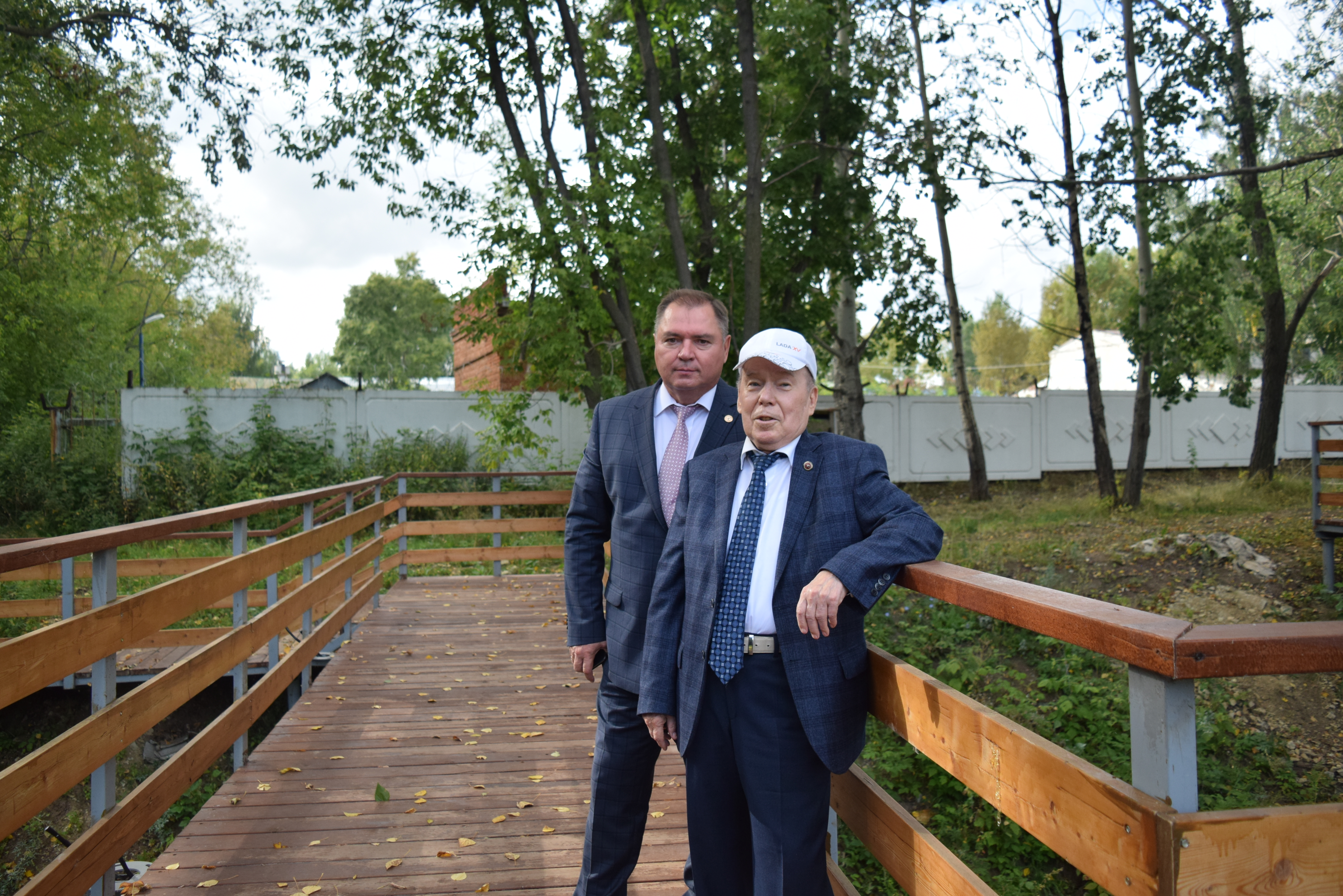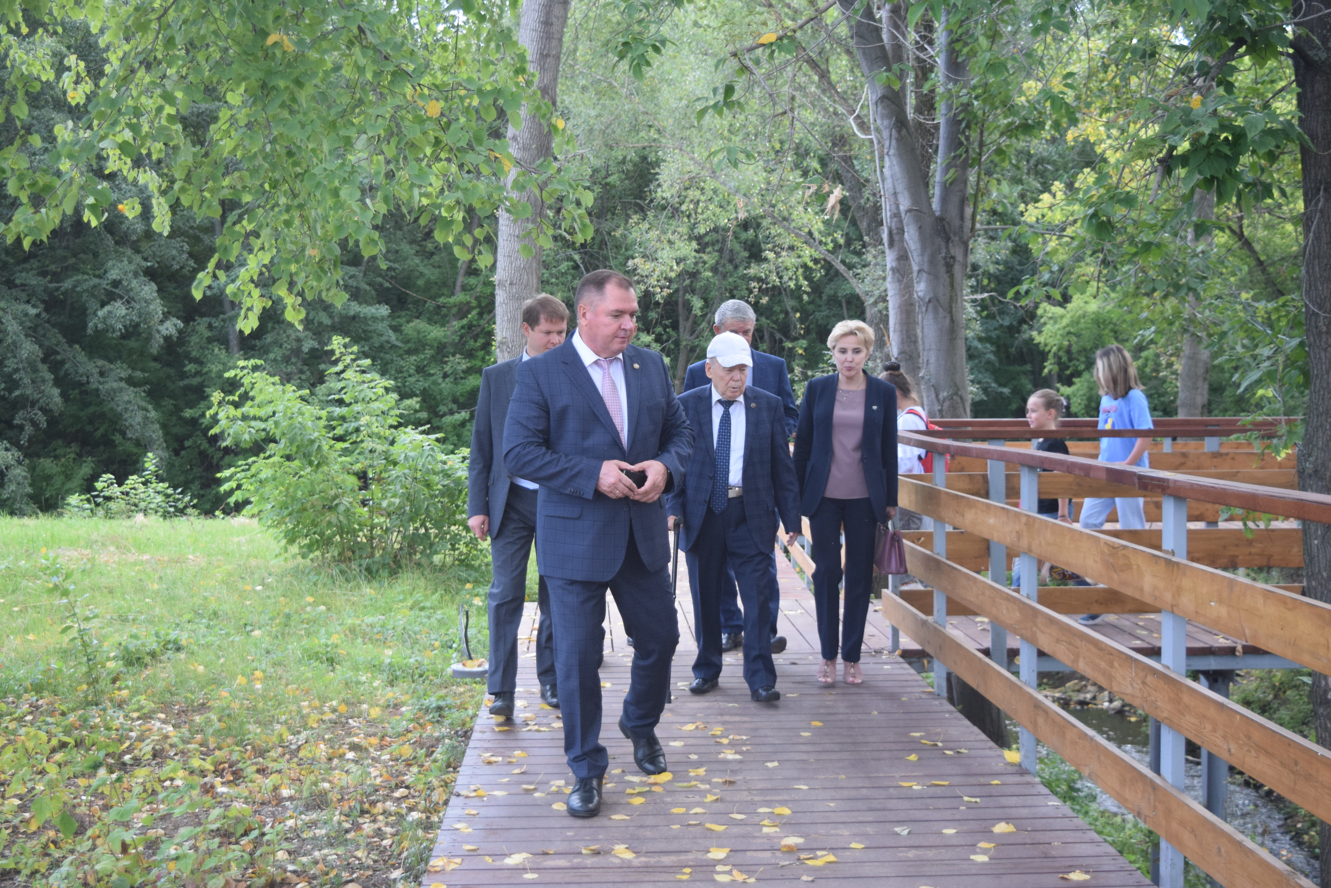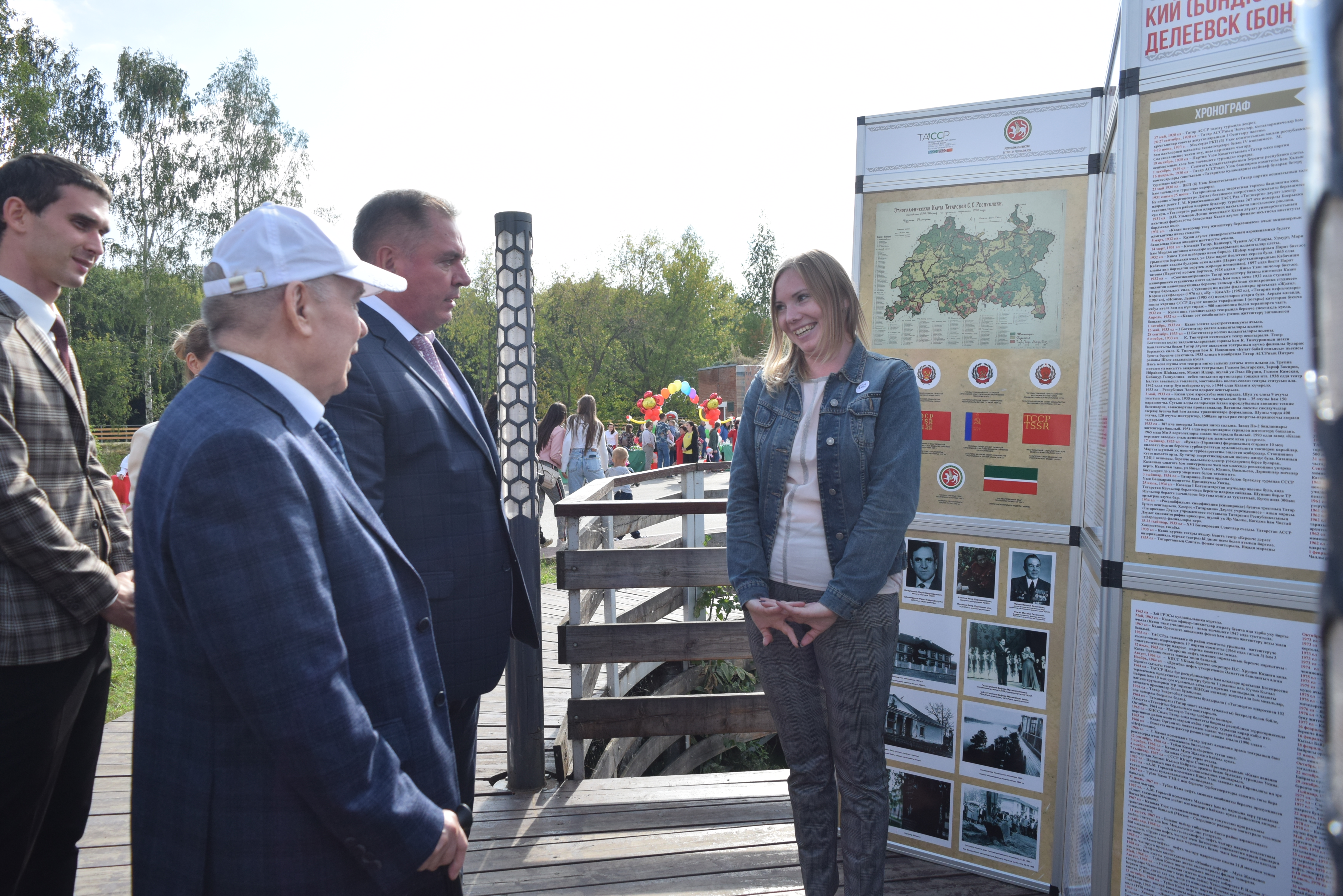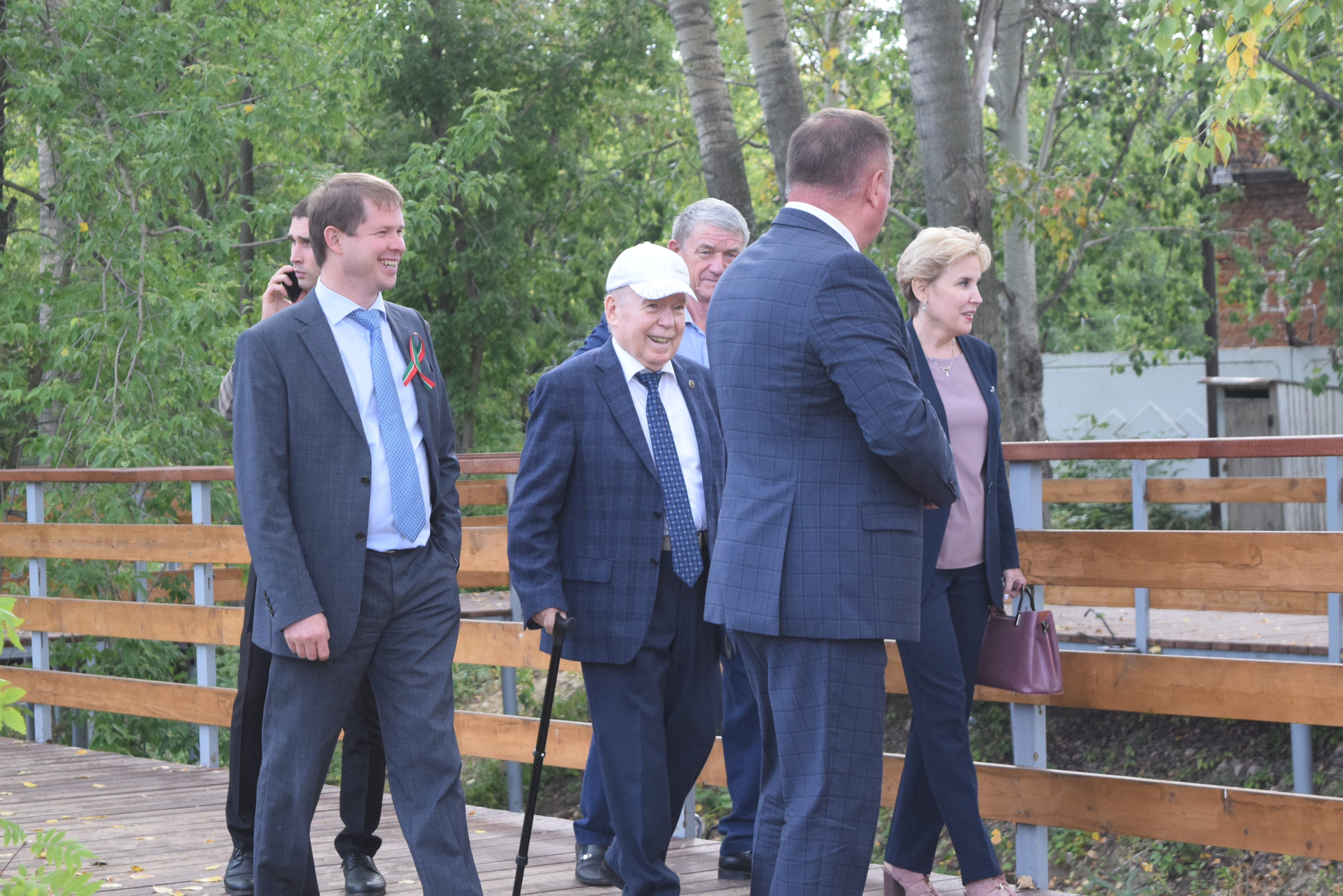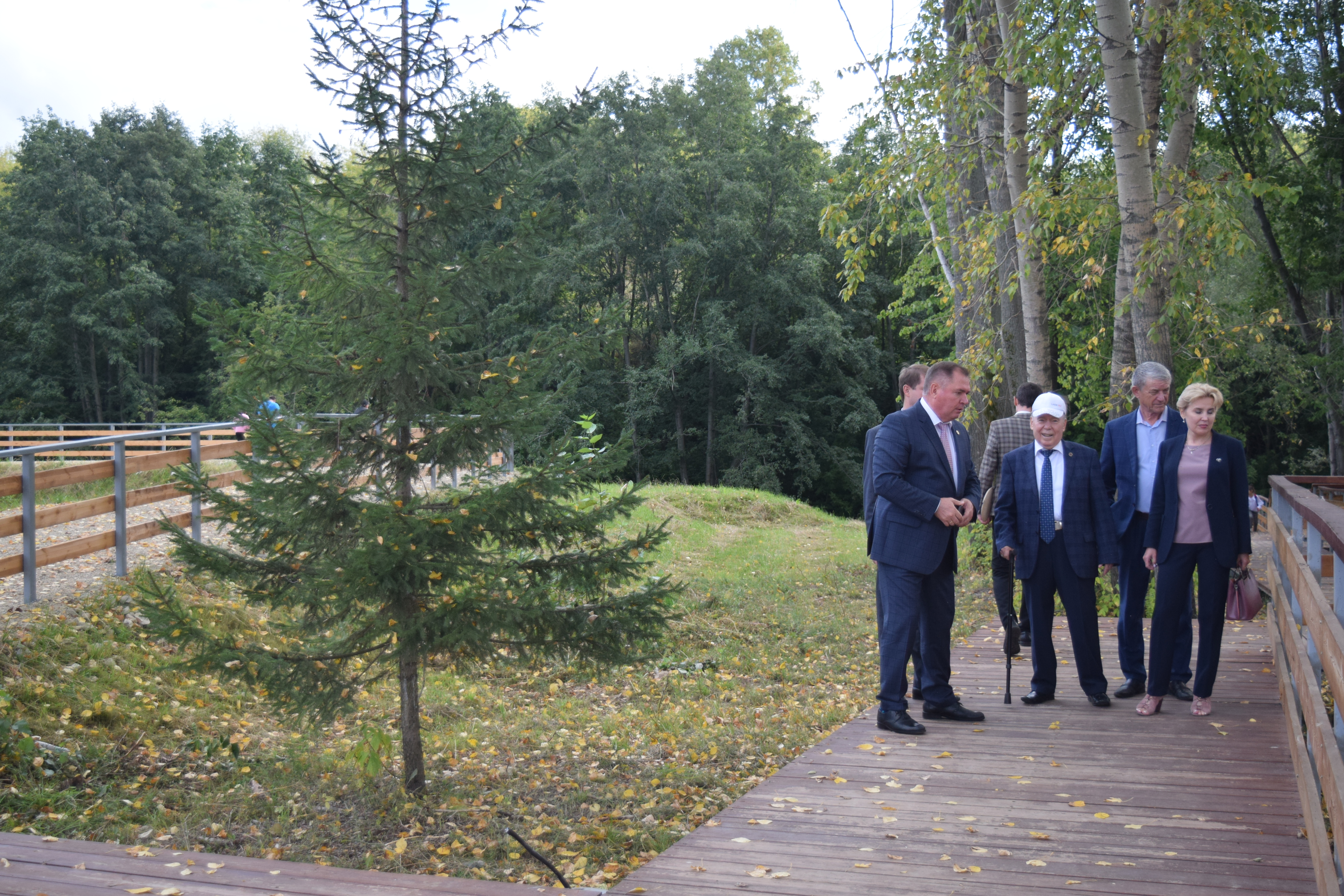 Валерий Чершинцев вместе с Мансуром Хуснуллиным осмотрели выставку, а также прогулялись по благоустраивающемуся парку.