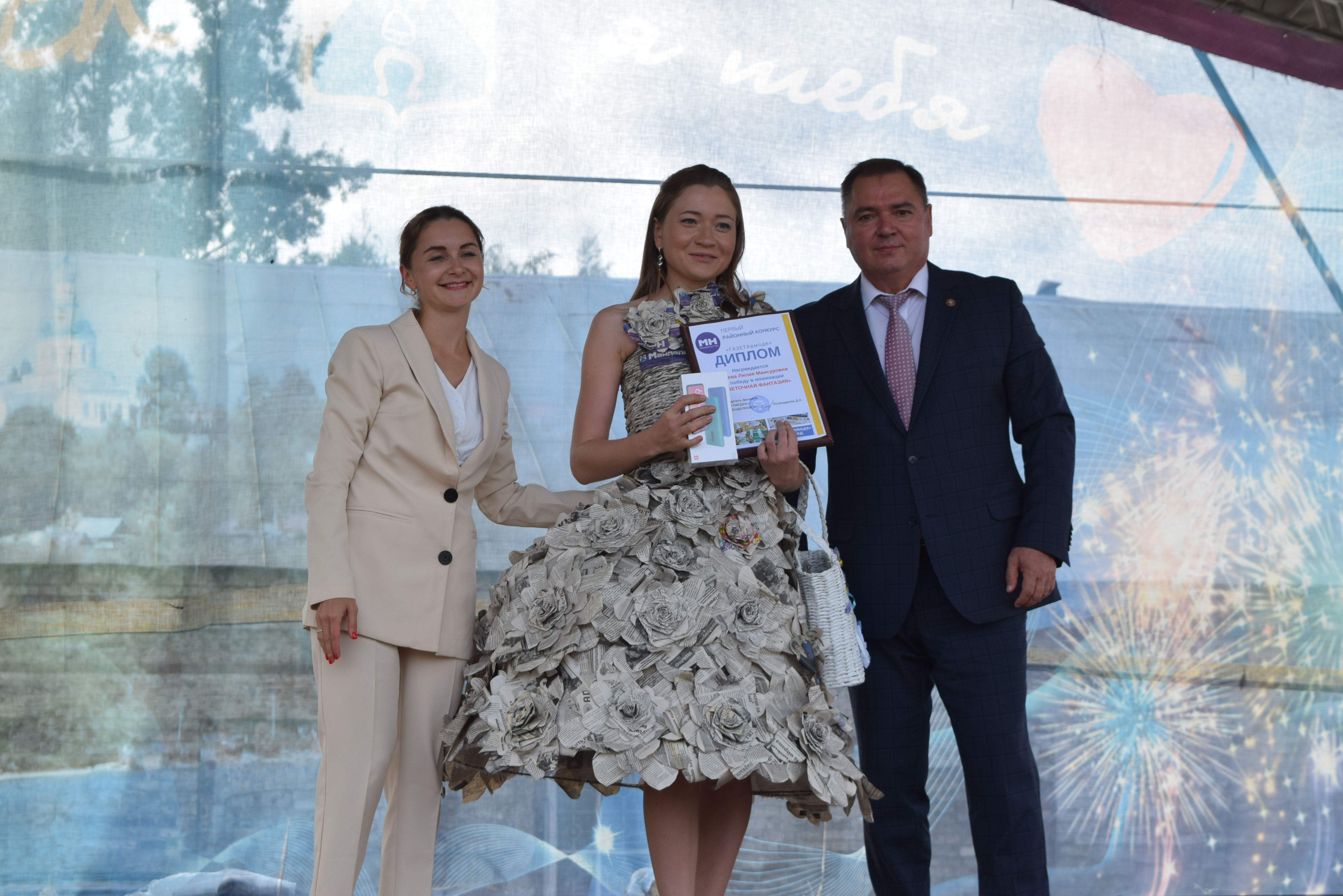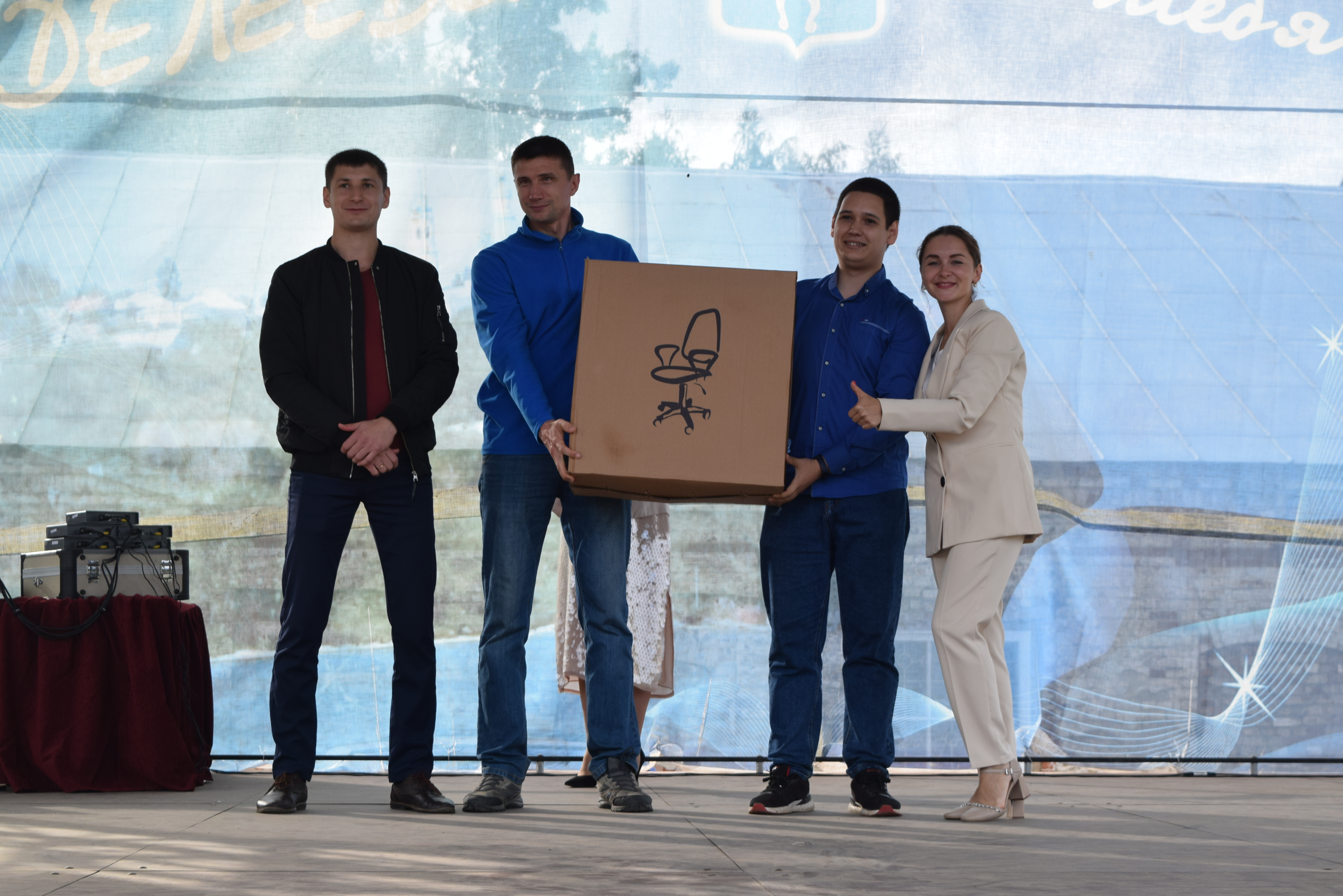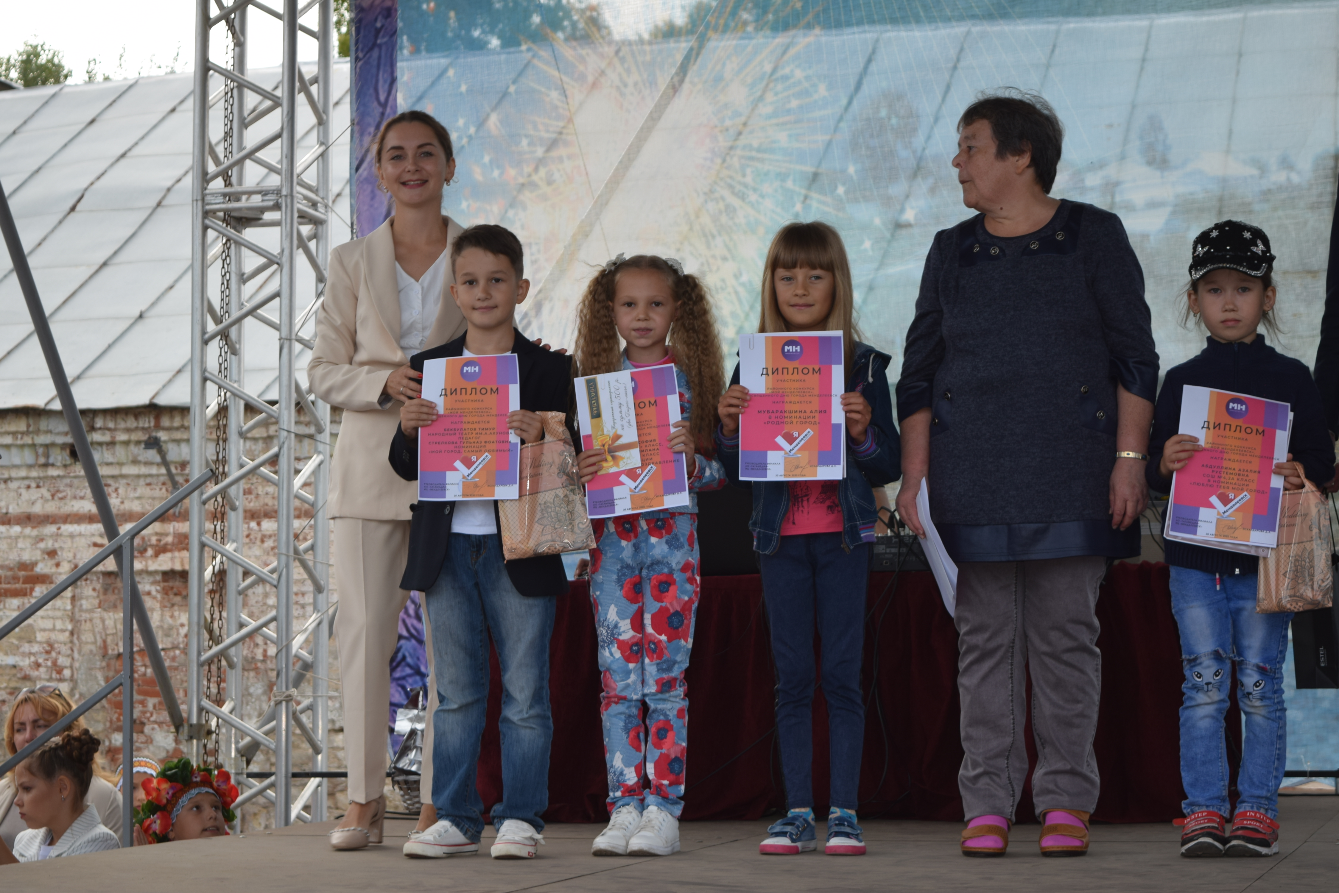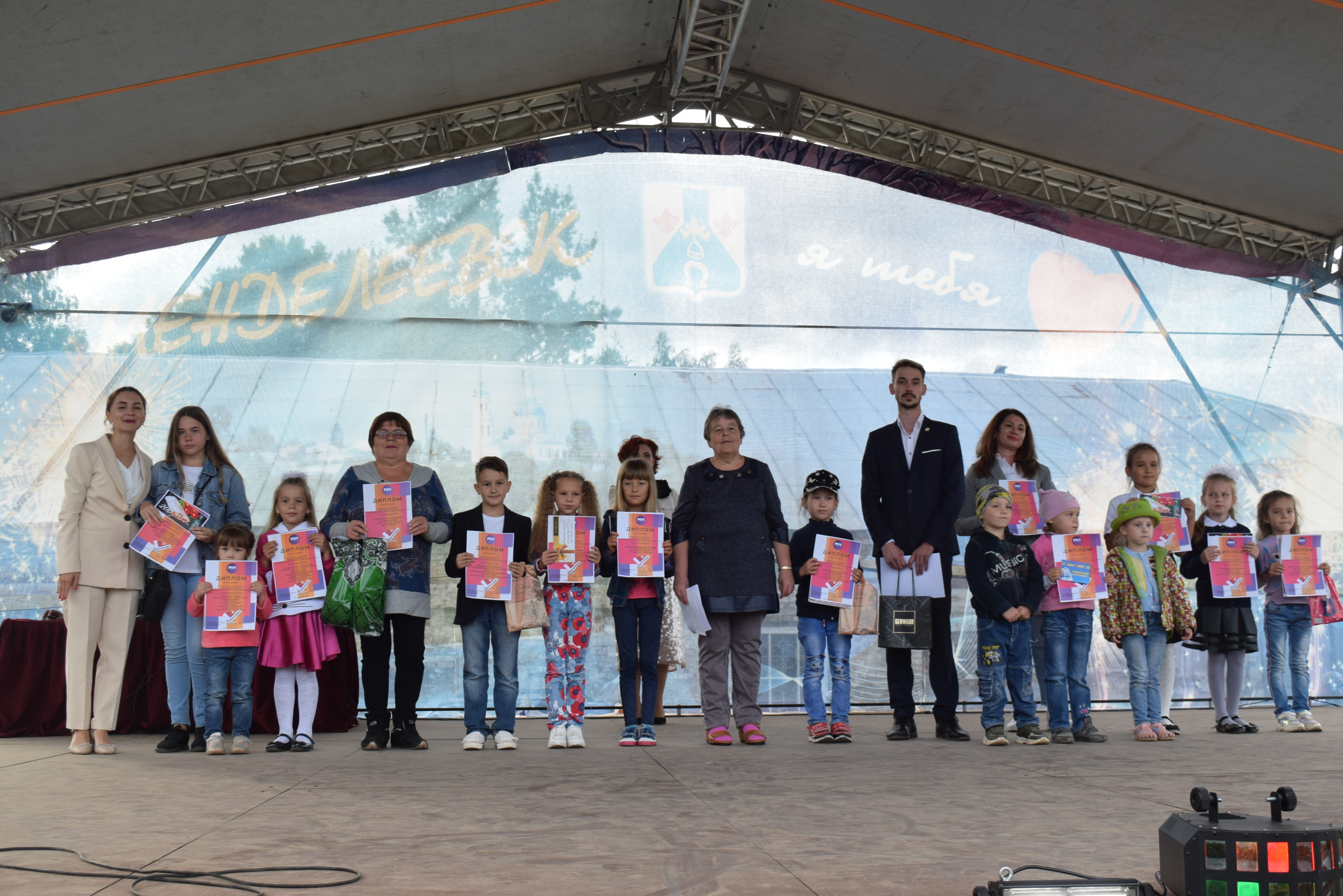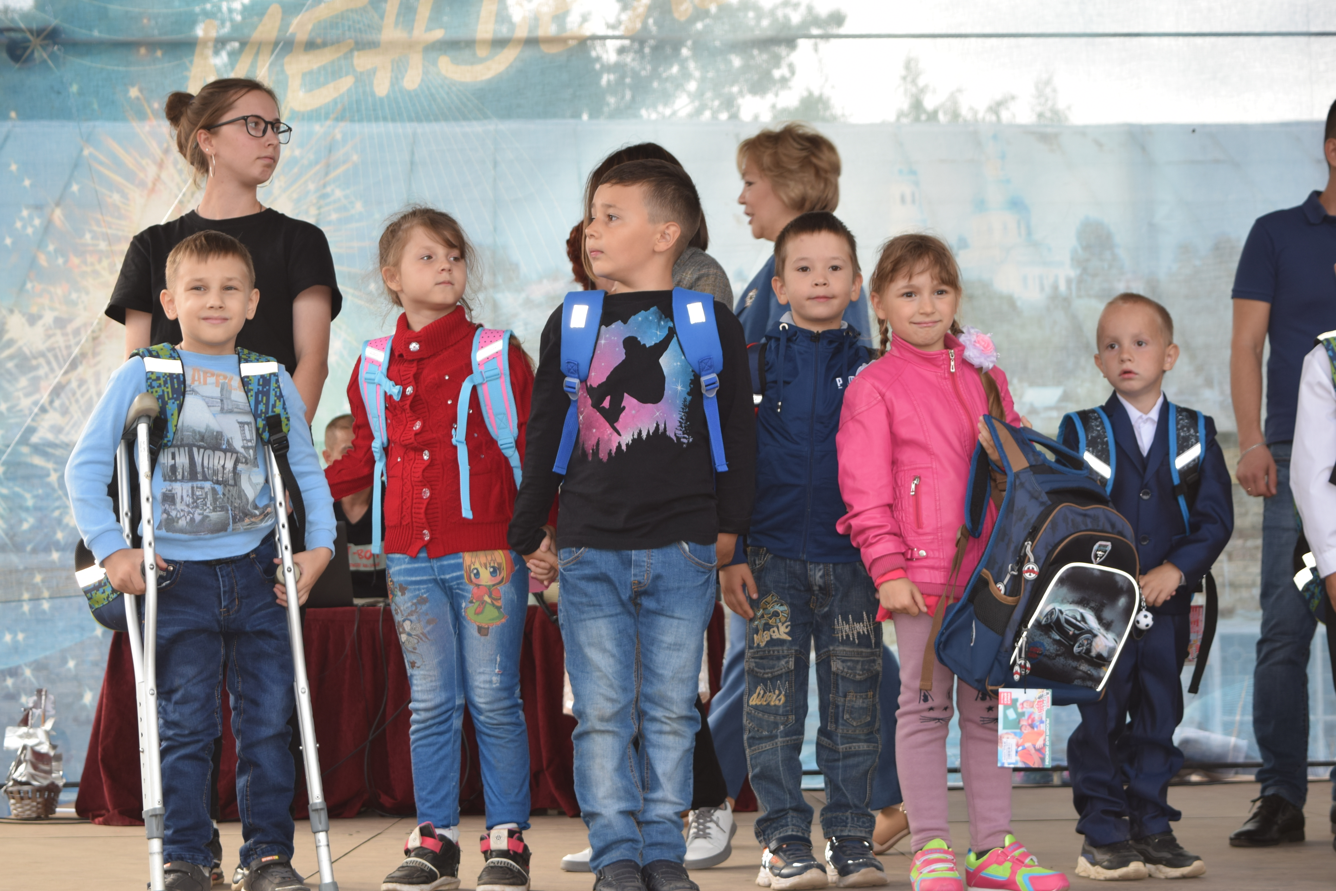 Далее на сцене Глава района поприветствовал собравшихся жителей и поздравил всех с праздником. Также 35 первоклассникам Главой района и спонсорами были вручены портфели в рамках акции "Помоги собраться в школу!". Далее прошли награждения участников и победителей конкурсов, организованных издательством "Менделеевские новости".