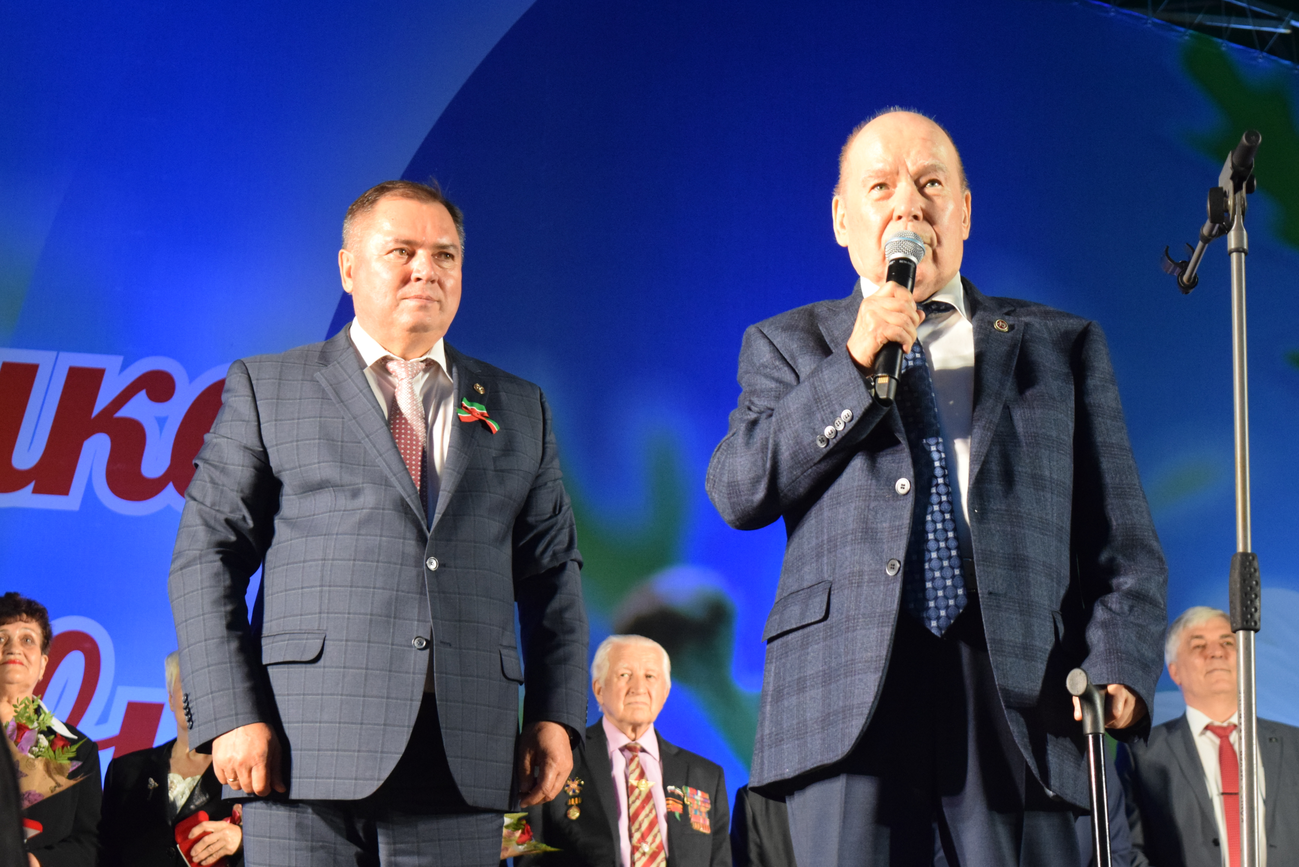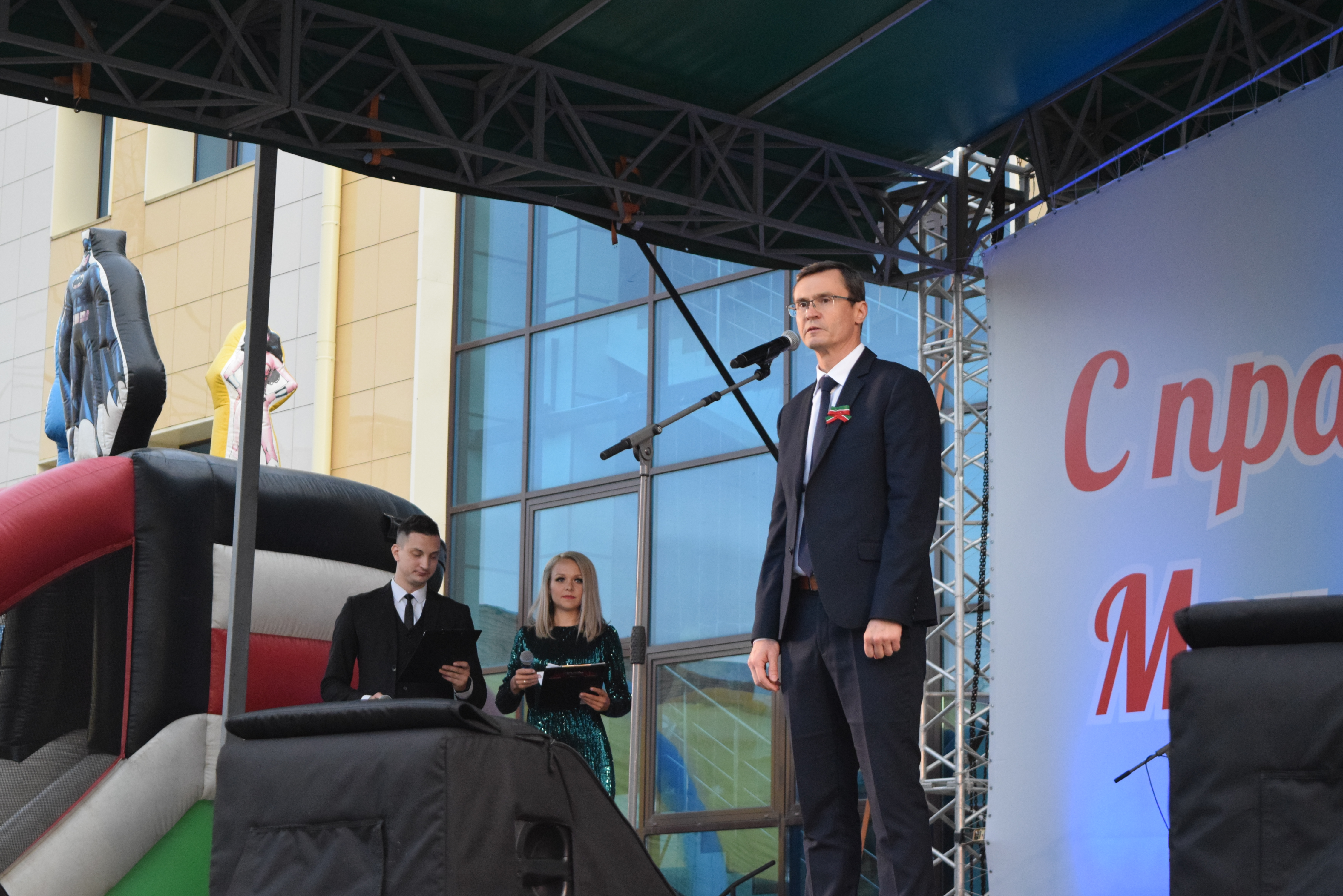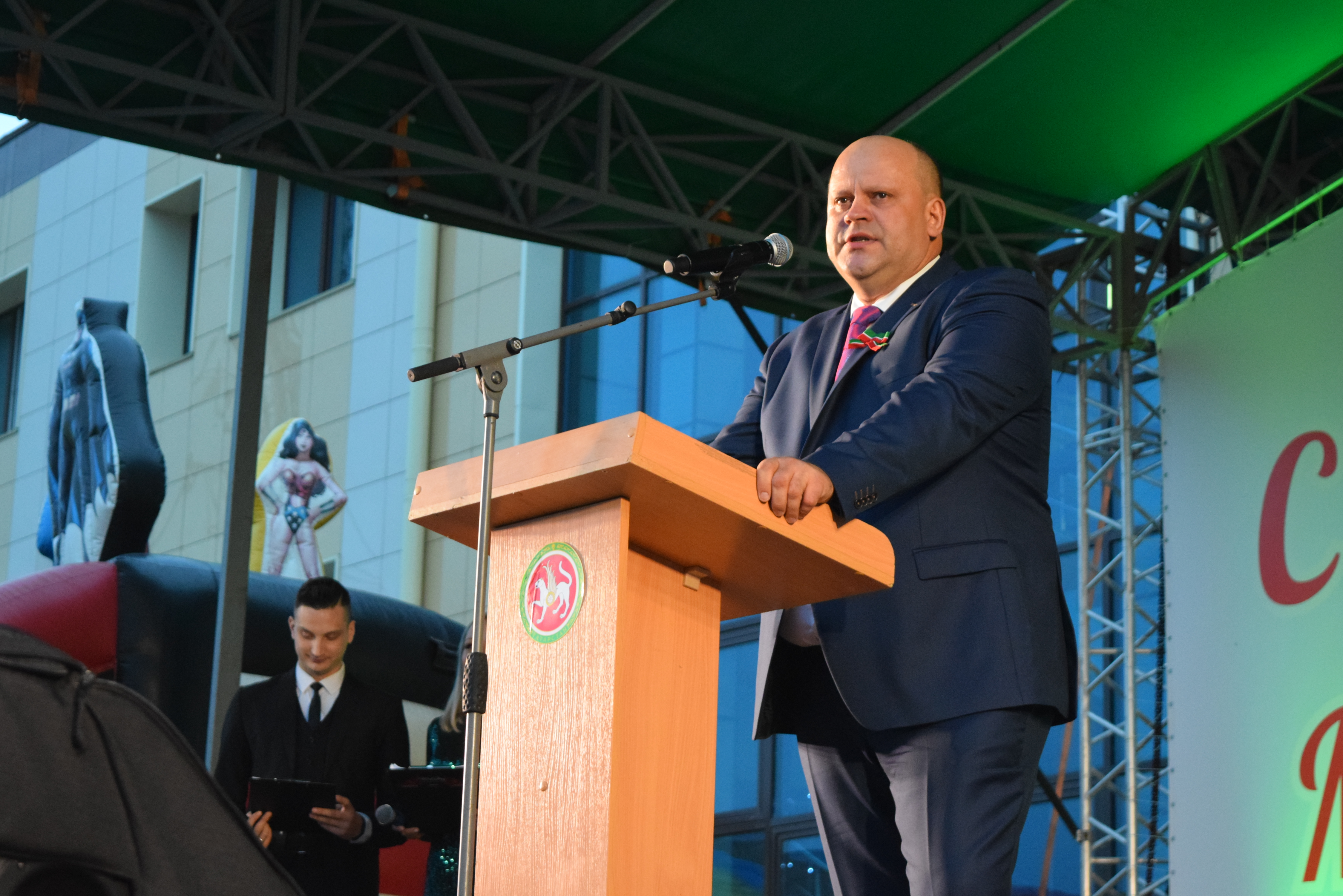 Мансур Хуснуллин обратился к собравшимся на площади жителям и гостям Менделеевска, поздравил с праздничными датами и отметил, что очень гордится Менделеевским районом и рад, что район преображается и становится лучше.