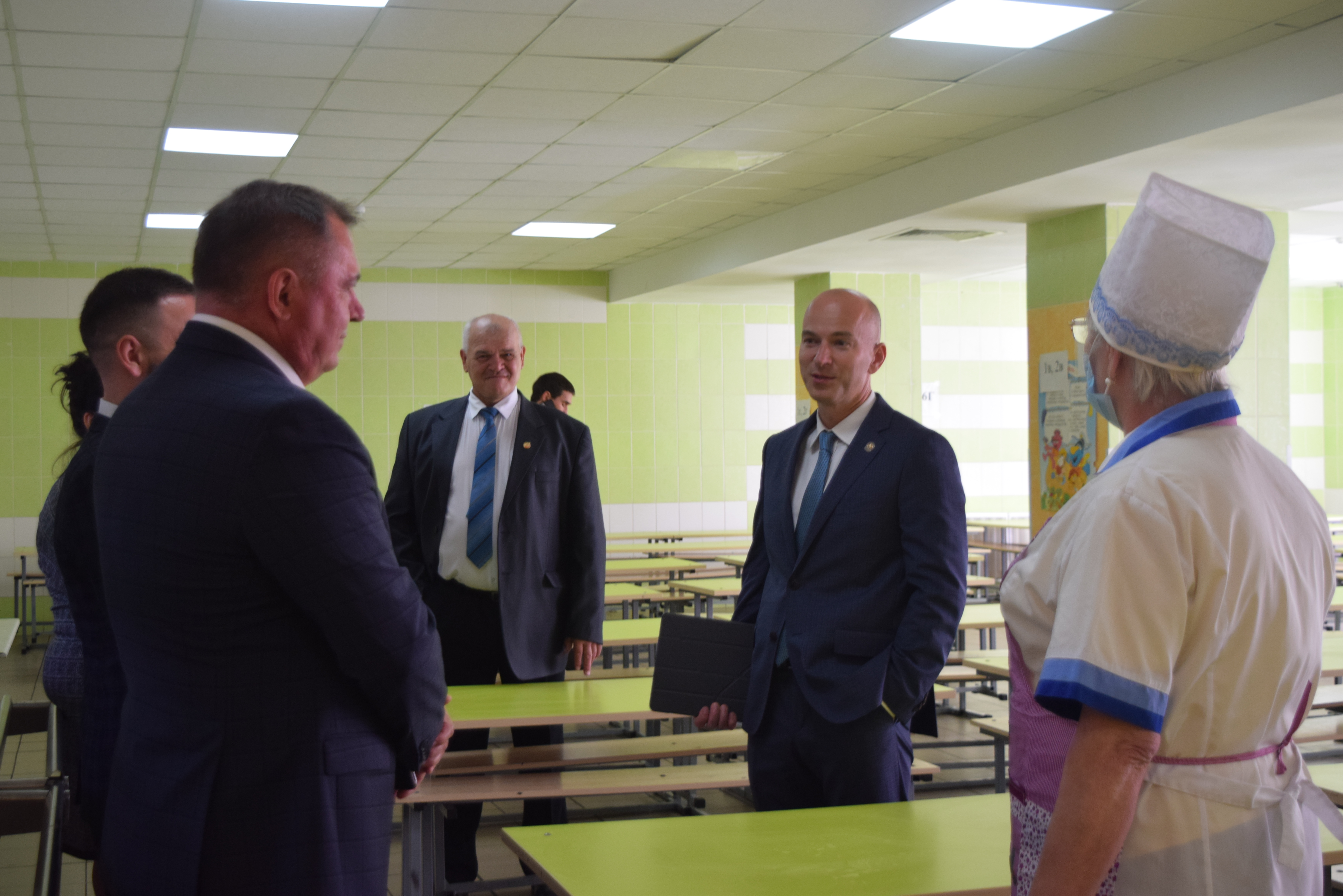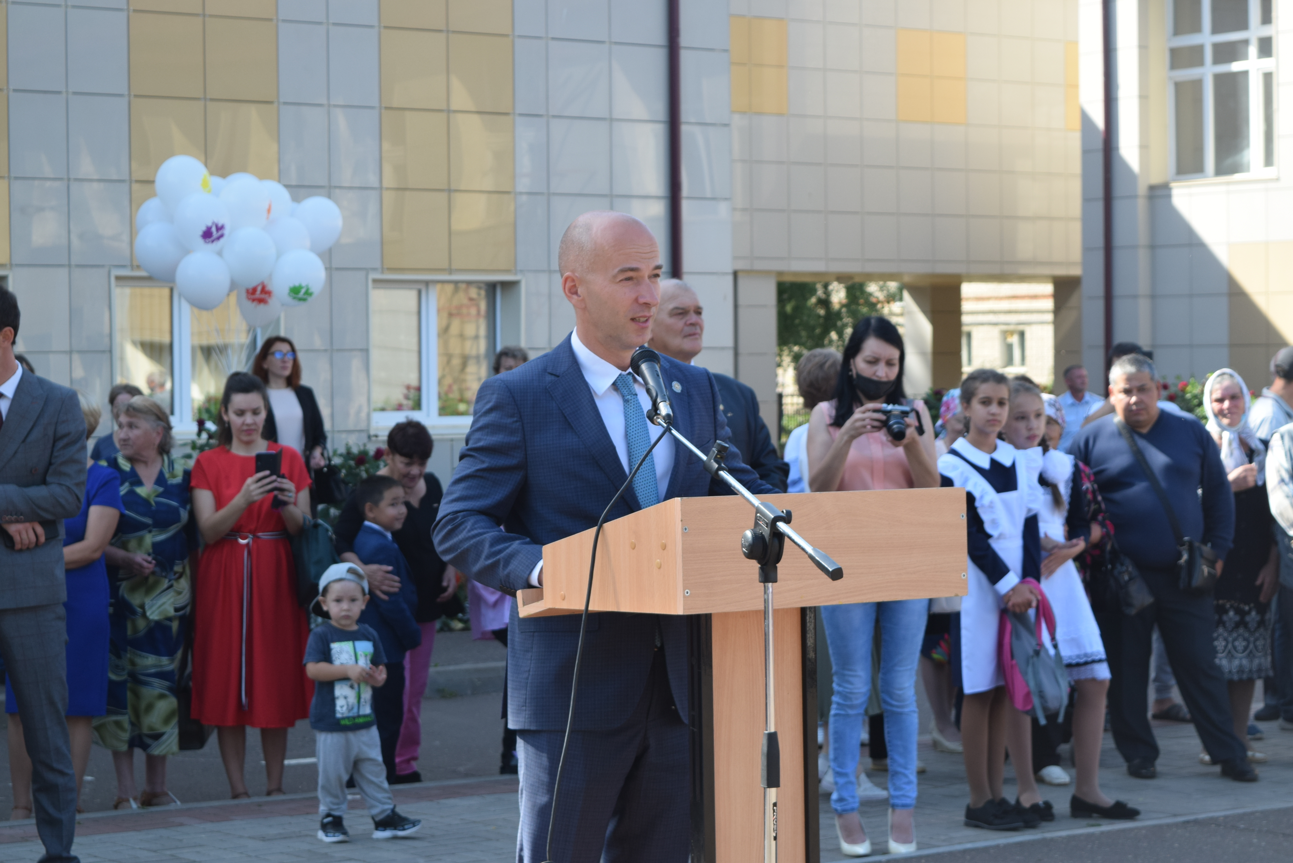 Глава района Валерий Чершинцев и Председатель Государственного комитета Республики Татарстан по туризму Сергей Иванов поздравили учеников МБОУ "СОШ №1 им. Героя Советского Союза М.С. Фомина г. Менделеевска" с Днем знаний.