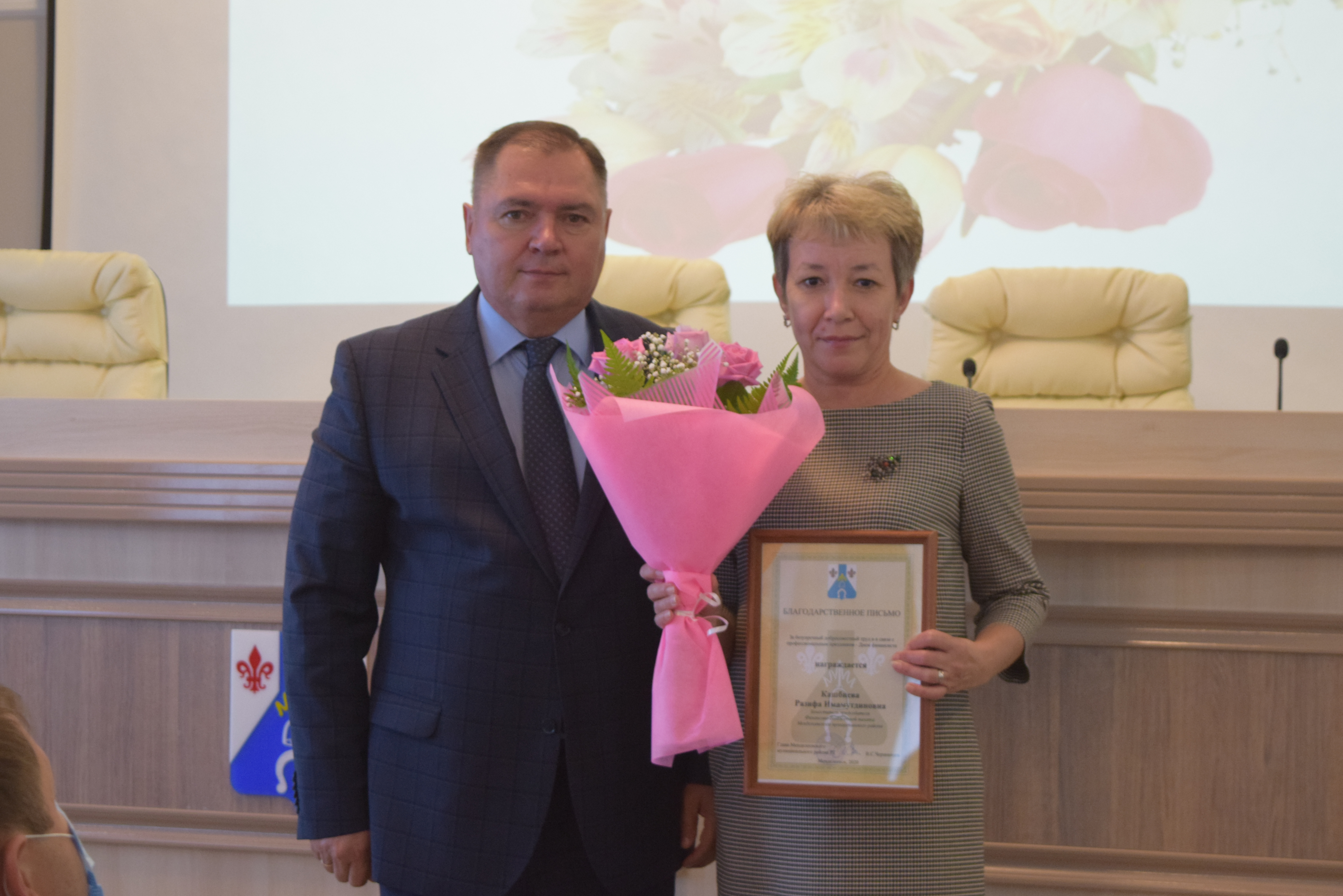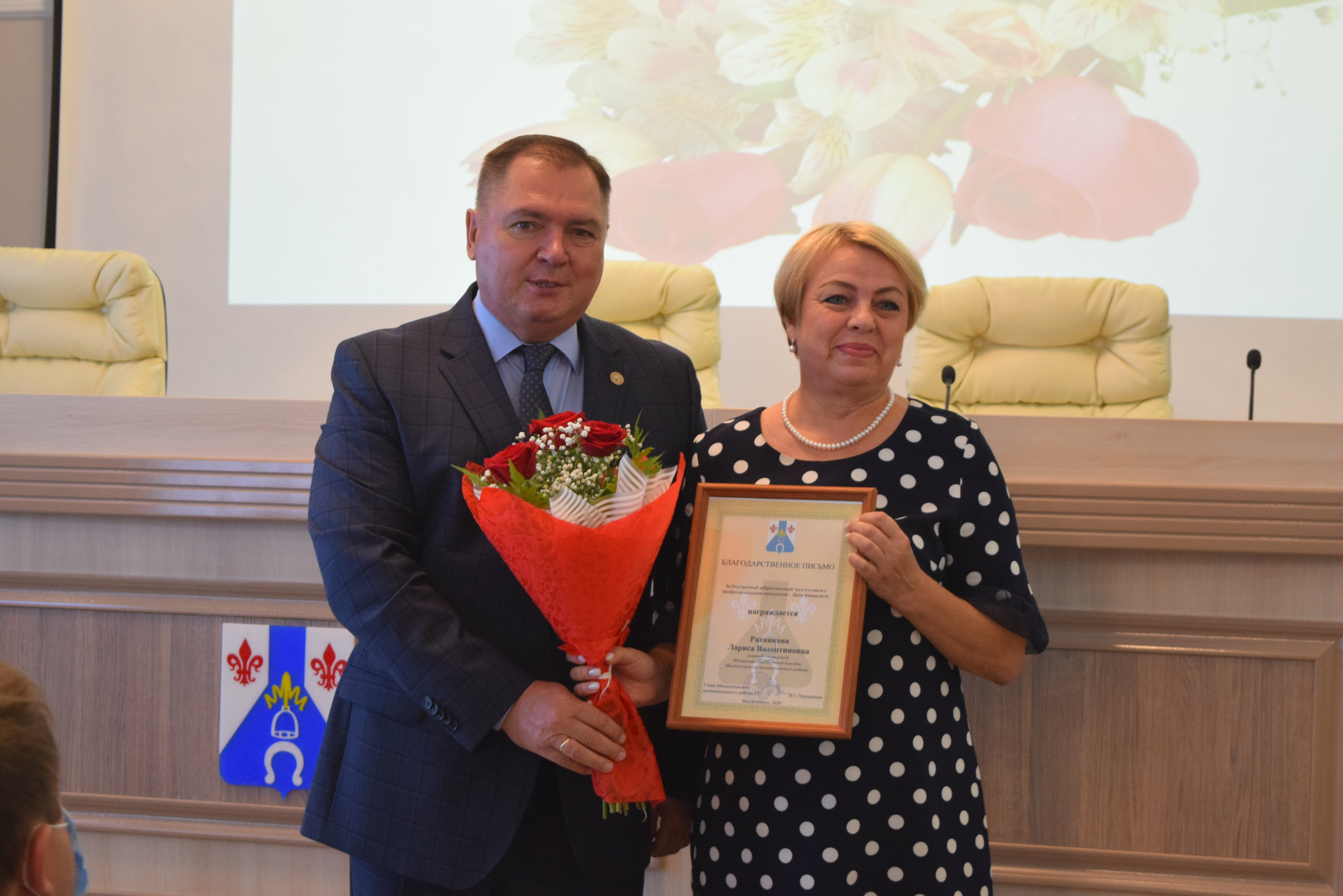 Перед началом выступлений наградили сотрудников Финансово - Бюджетной палаты ММР в честь Дня финансиста.
