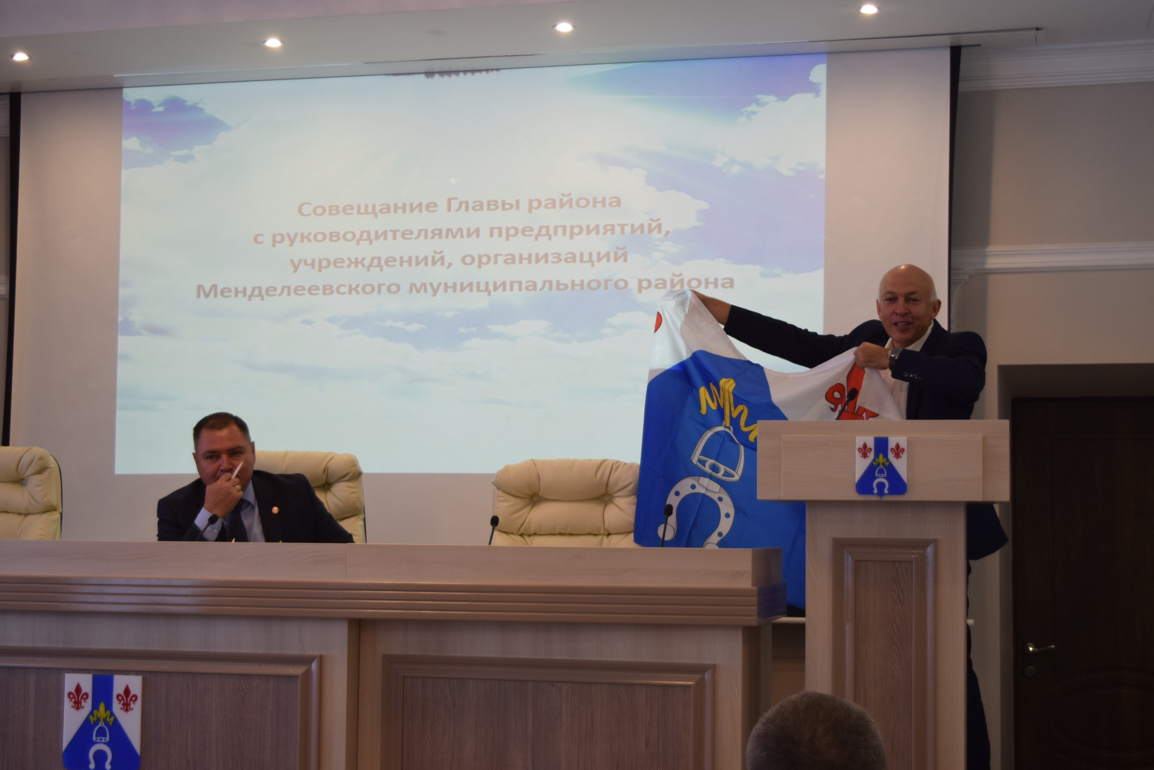 Сегодня в актовом зале администрации состоялось еженедельное Совещание с руководителями предприятий, учреждений, организаций Менделеевского муниципального района под руководством Главы района Валерия Чершинцева.