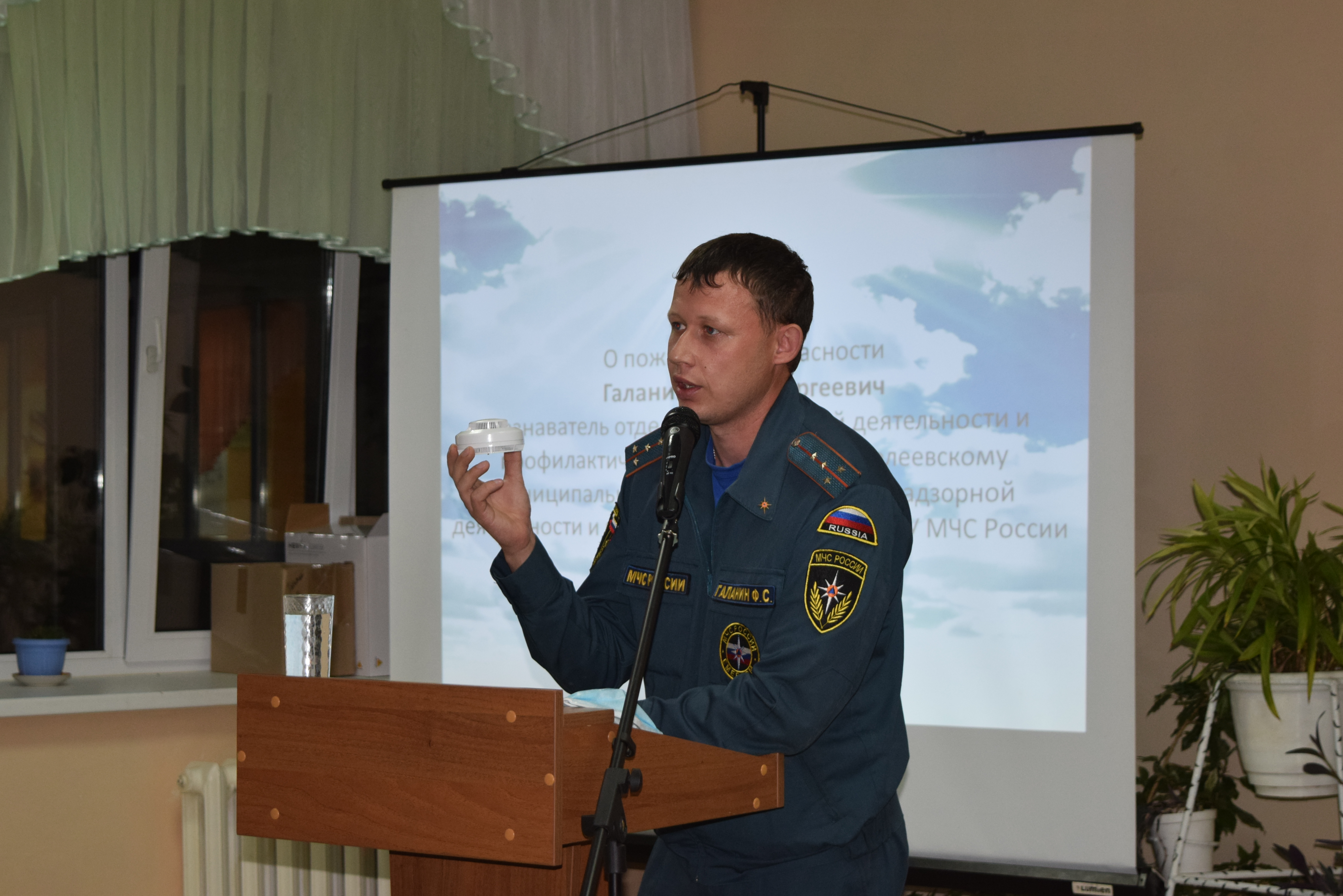 Также собравшимся о пожарной безопасности проинформировал Федор Галанин - дознаватель отделения надзорной деятельности и профилактической работы по Менделеевскому муниципальному району Управления надзорной деятельности и профилактической работы ГУ МЧС России по Республике Татарстан.