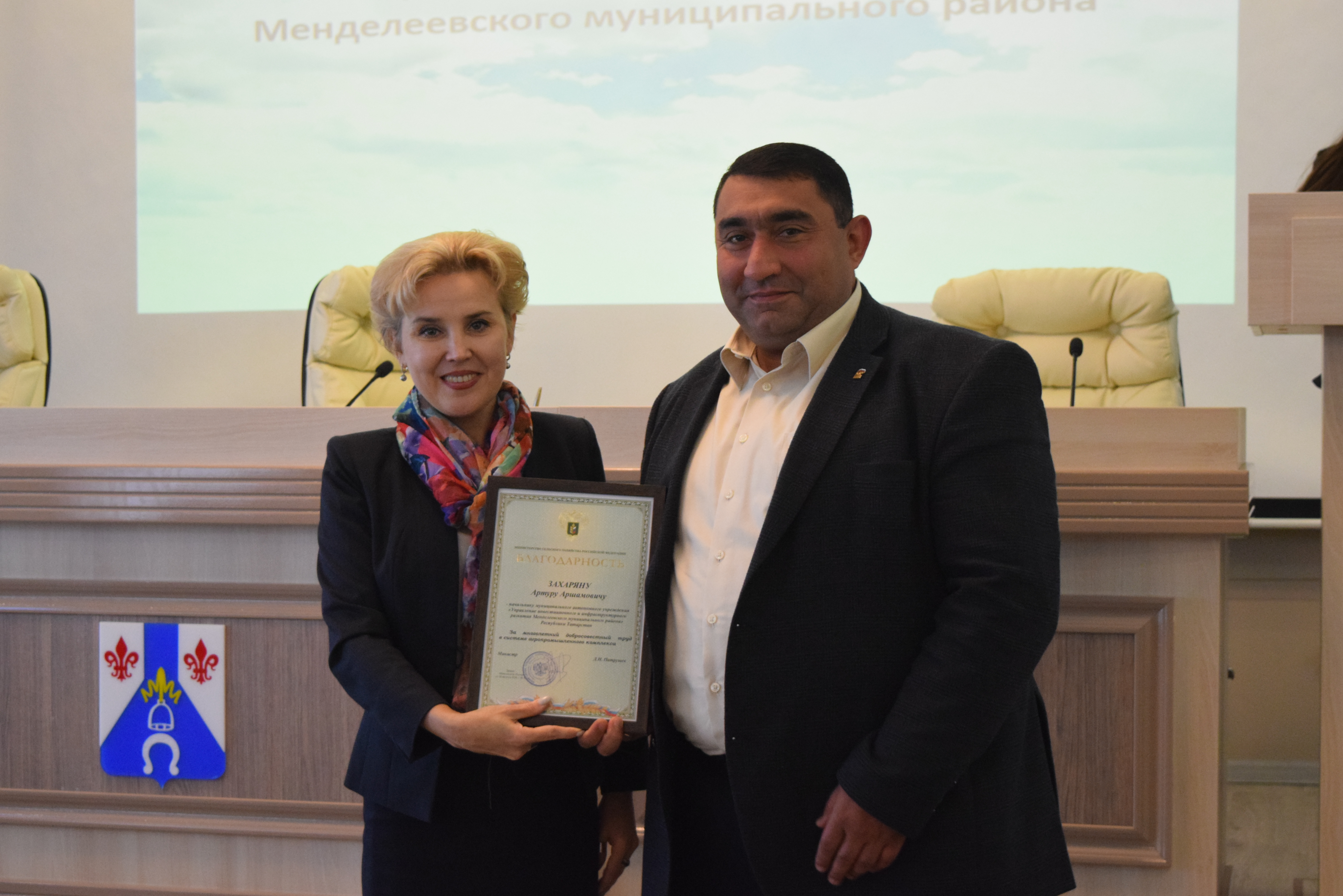 В начале совещания Благодарность Министерства сельского хозяйства РФ за многолетний добросовестный труд в системе агропромышленного комплекса была вручена Артуру Захаряну.